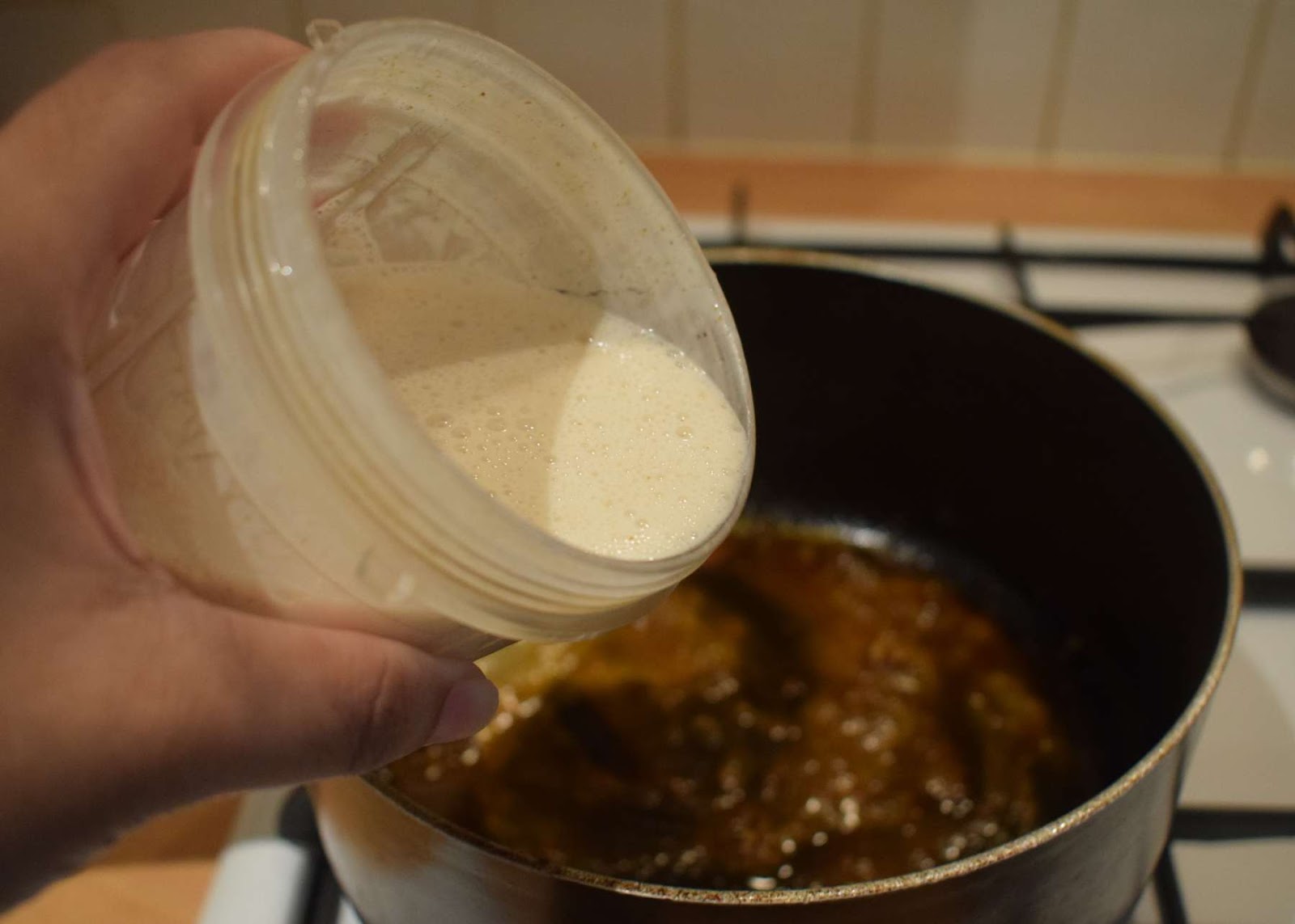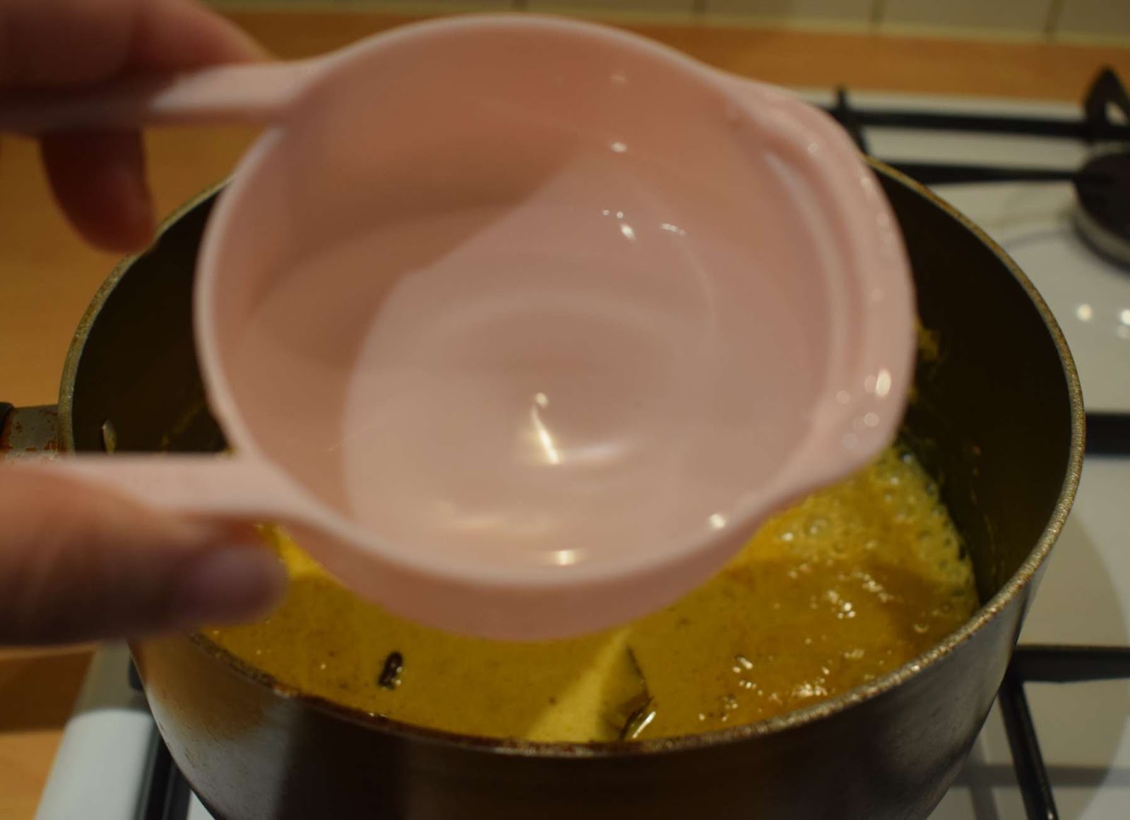 - Add the yogurt mixture (Step 8) into the pan and give a nice stir.