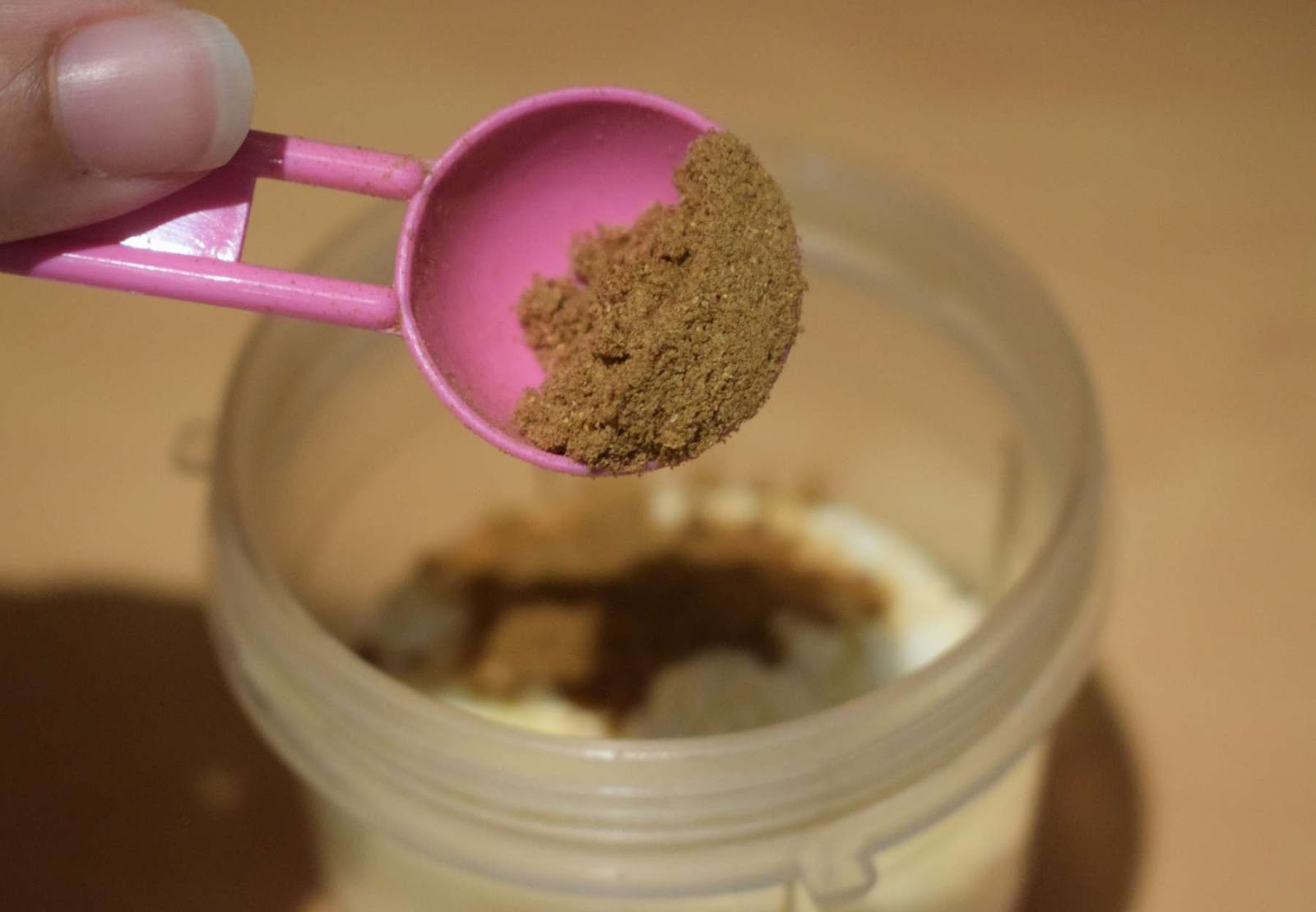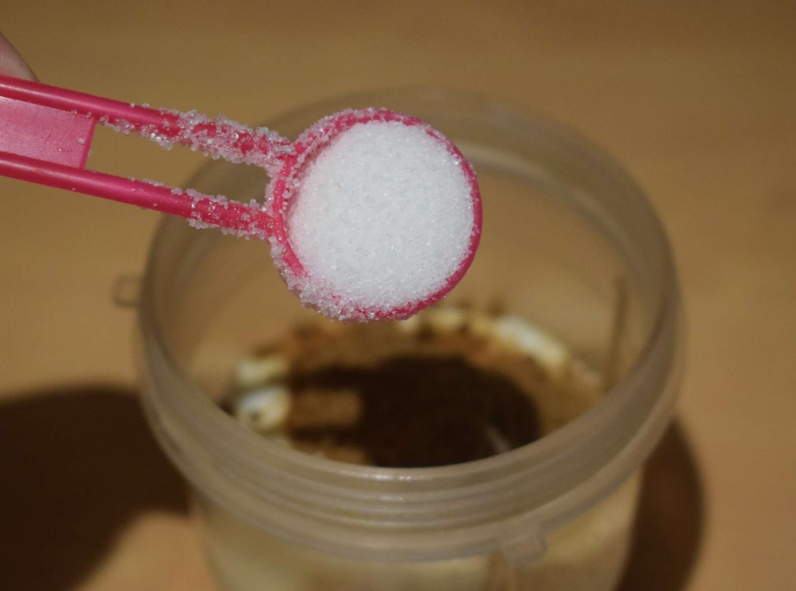 - Add 1 teaspoon besan (gram flour), ½ teaspoon cumin powder, ½ teaspoon coriander powder, 2 ½ teaspoons of sugar, one by one into the jar of the grinder.