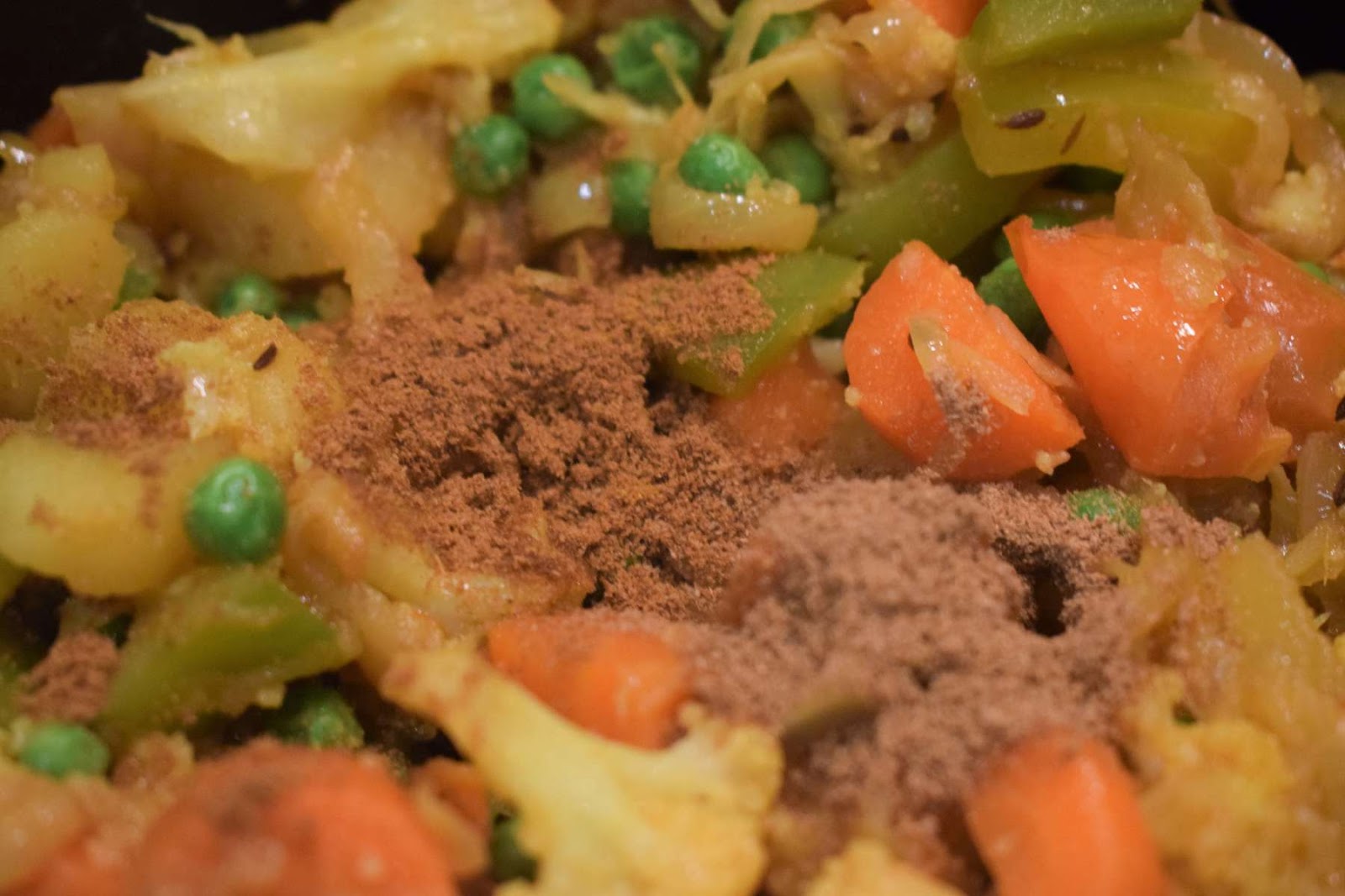 In this recipe, I have used Cumin seeds for tempering. First, I have fried the Onions and then added Ginger Garlic paste. After cooking this for a while, I have added vegetables one by one into the pan for cooking. In this preparation, I have used Cumin powder, Coriander powder and Garam Masala powder for flavouring. I have used fresh Cilantros too.