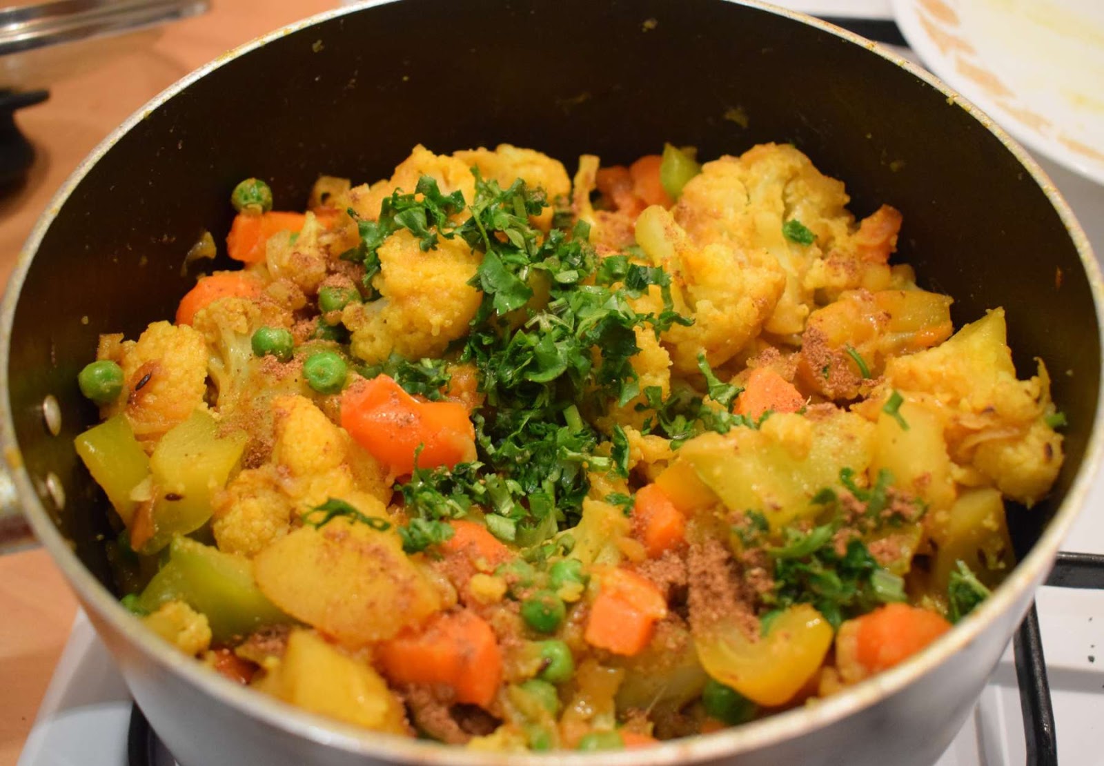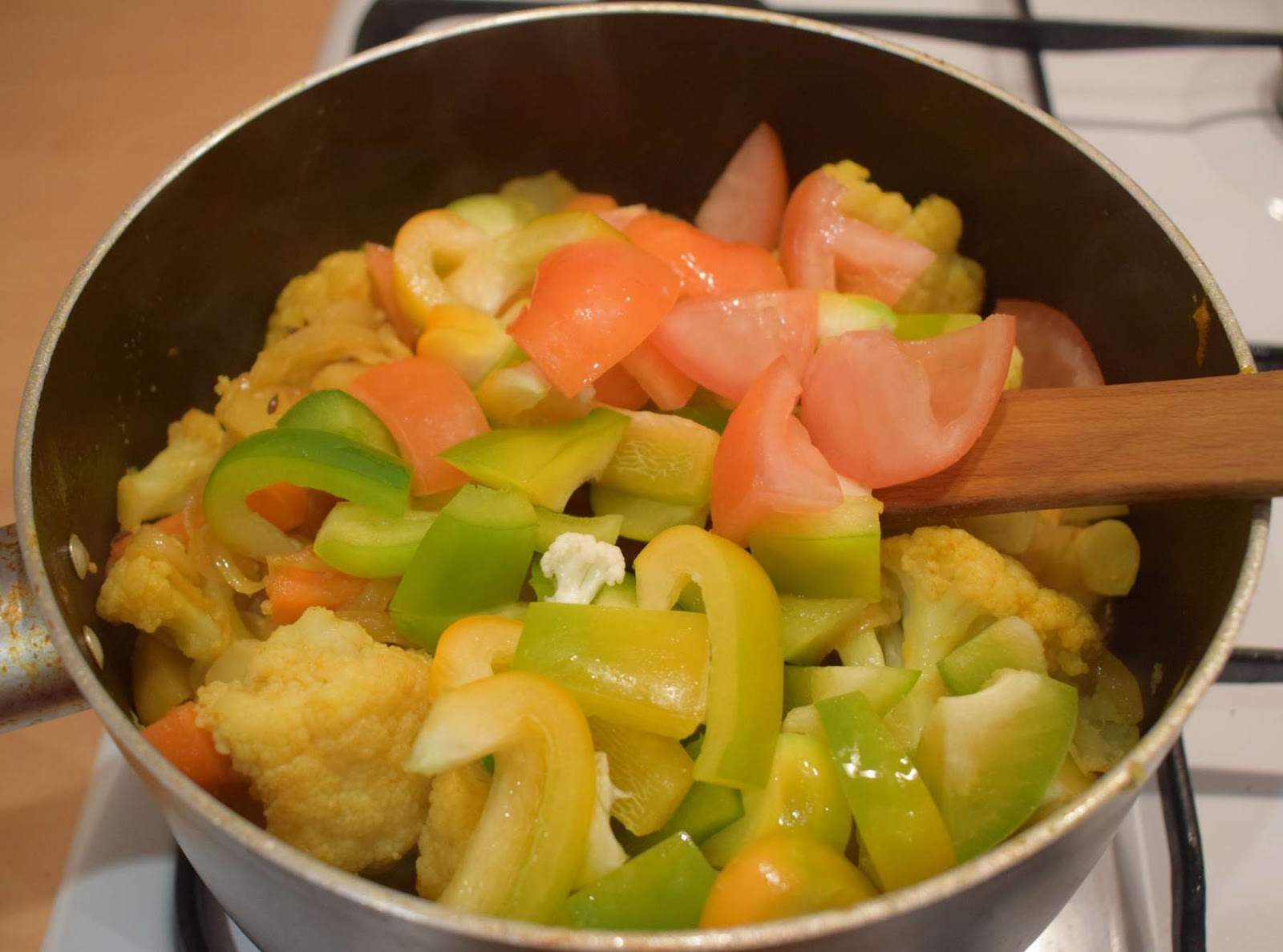 - Cover the pan and cook them in low flame until the vegetables get tender.