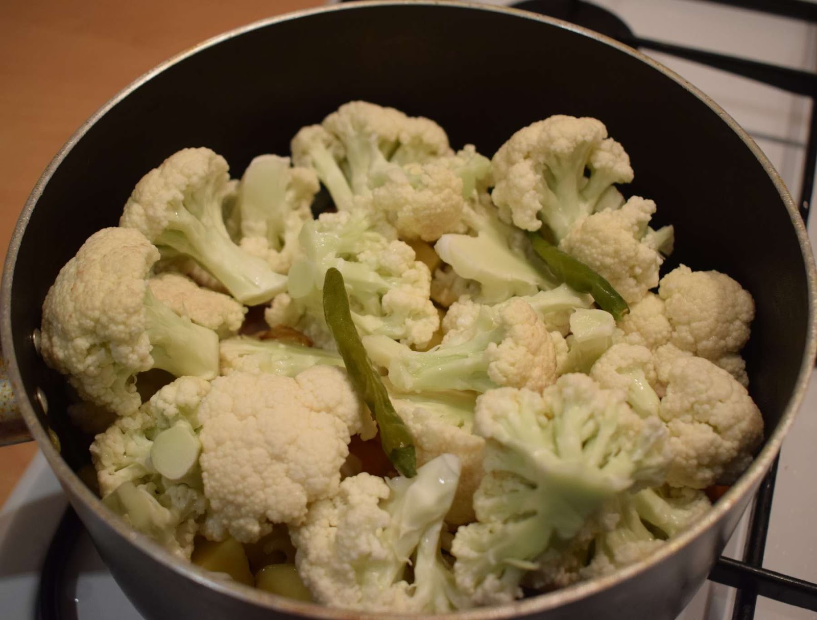 - Add Cauliflower, green Chillies and cook it in medium flame.