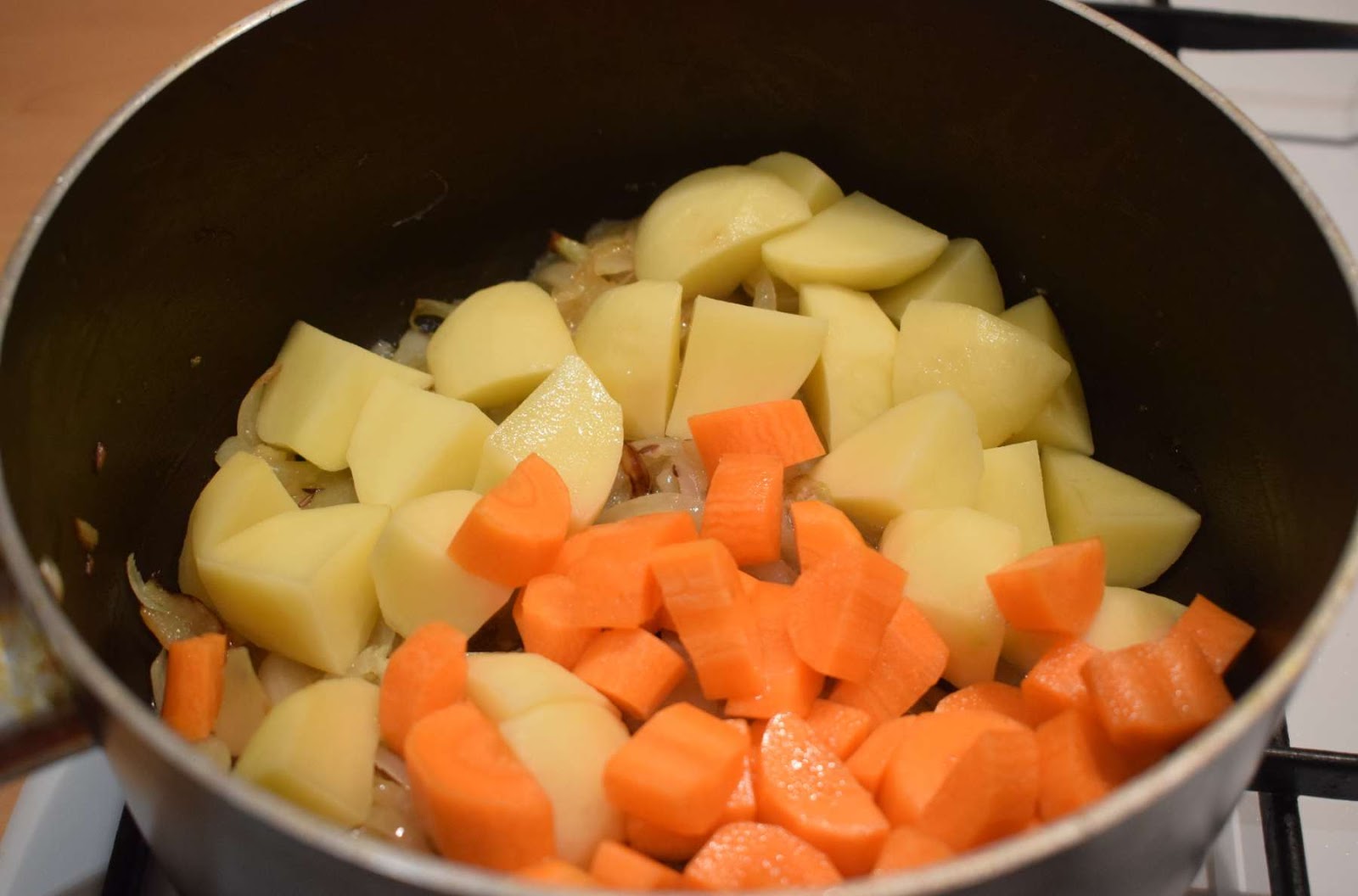 - Add Potatoes, Carrots and cook it for 3-4 minutes in low flame.