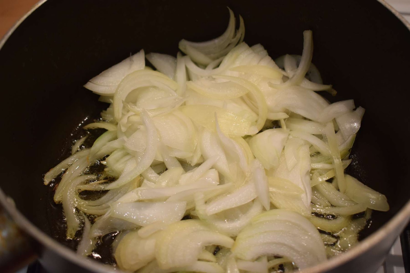 - Add the sliced Onions and cook it for 2-3 minutes in medium high flame until it becomes translucent.