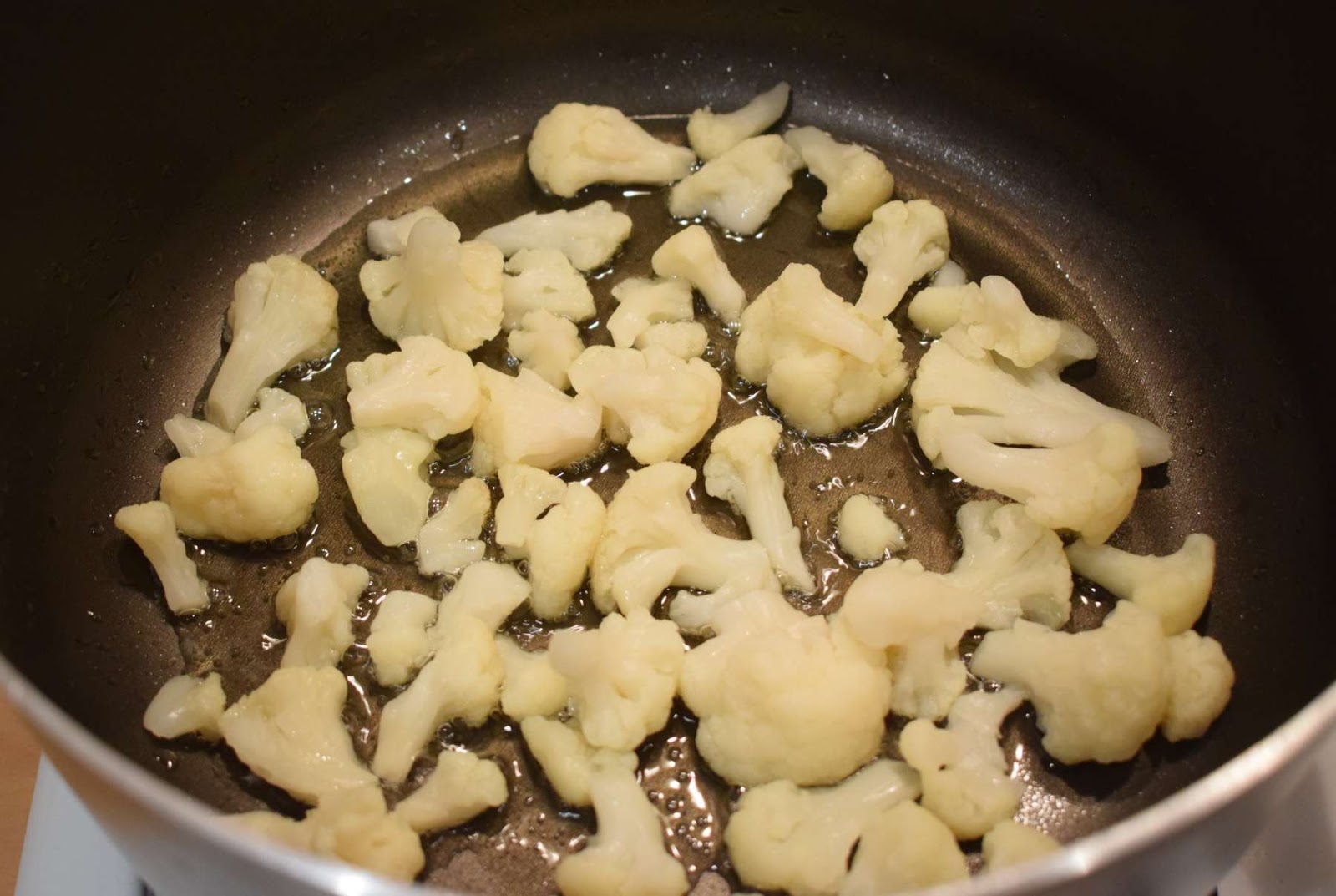 - Add Cauliflowers into the pan and fry them until they become golden brown.