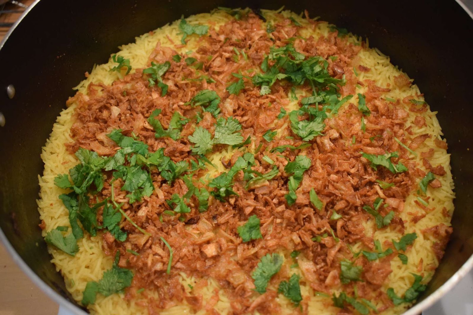 - Add rest of the Cilantro, fried Onions and cook it for another 5 minutes in lowest flame.