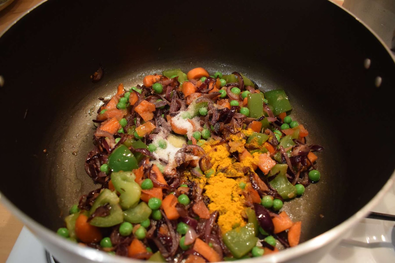 - Add 1 teaspoon Turmeric powder and mix it well.
