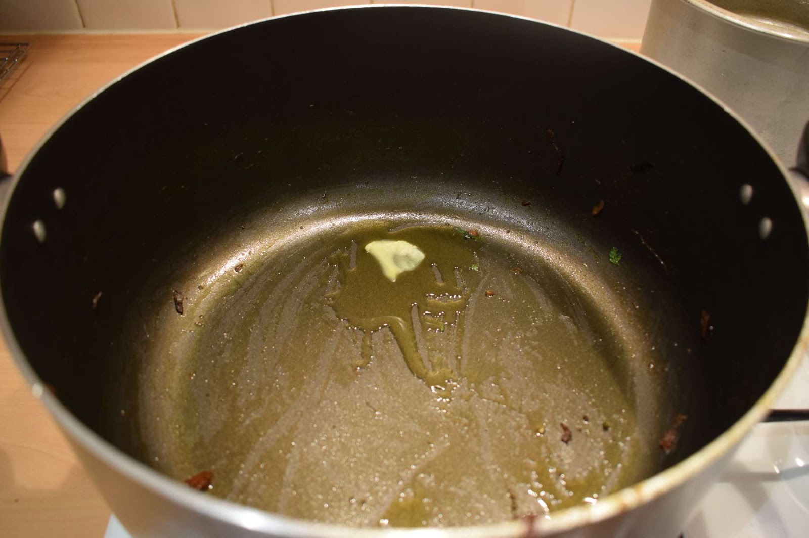 - Add Ghee into the same pan and allow it to melt.