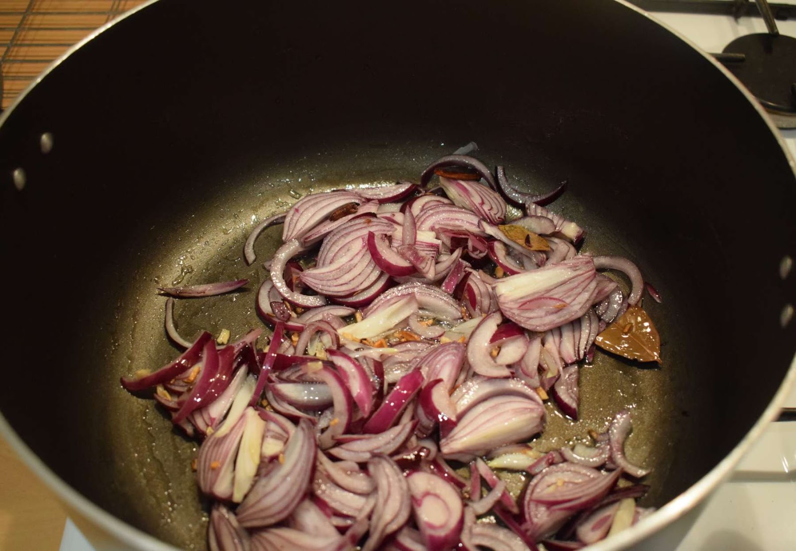 - Add Onions and fry them for 2-3 minutes in medium high flame till they become translucent.