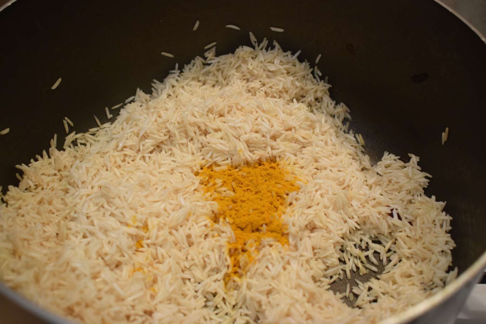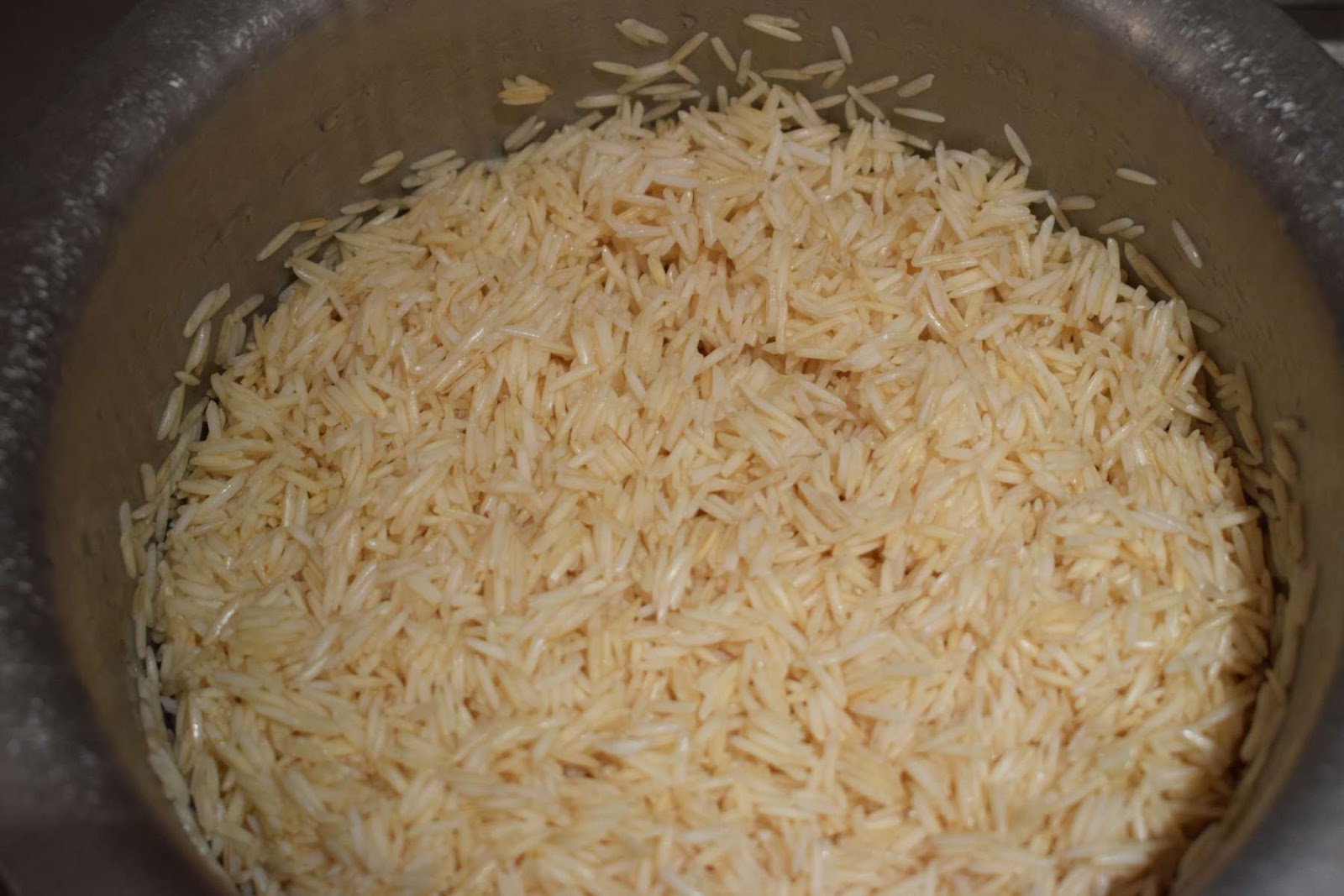 - Add Basmati rice (Step 2) into the pan.
