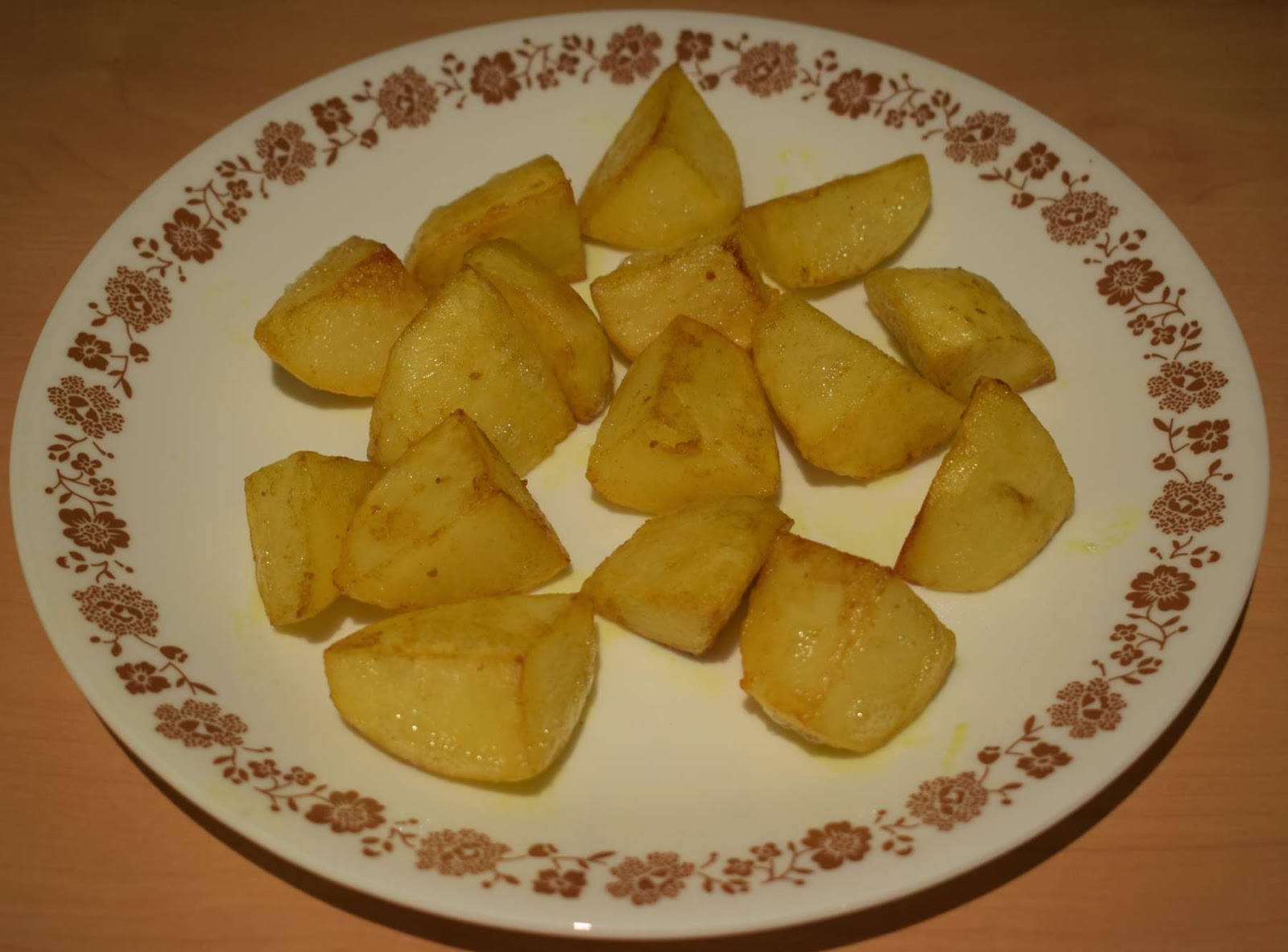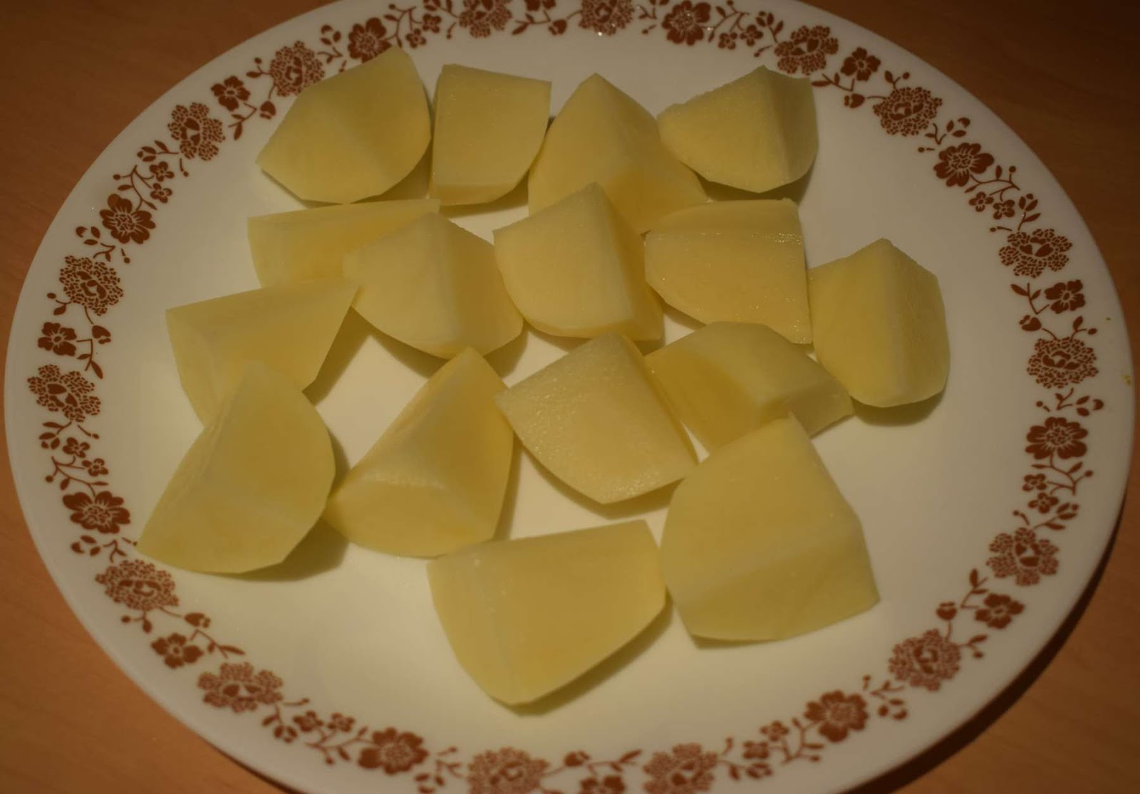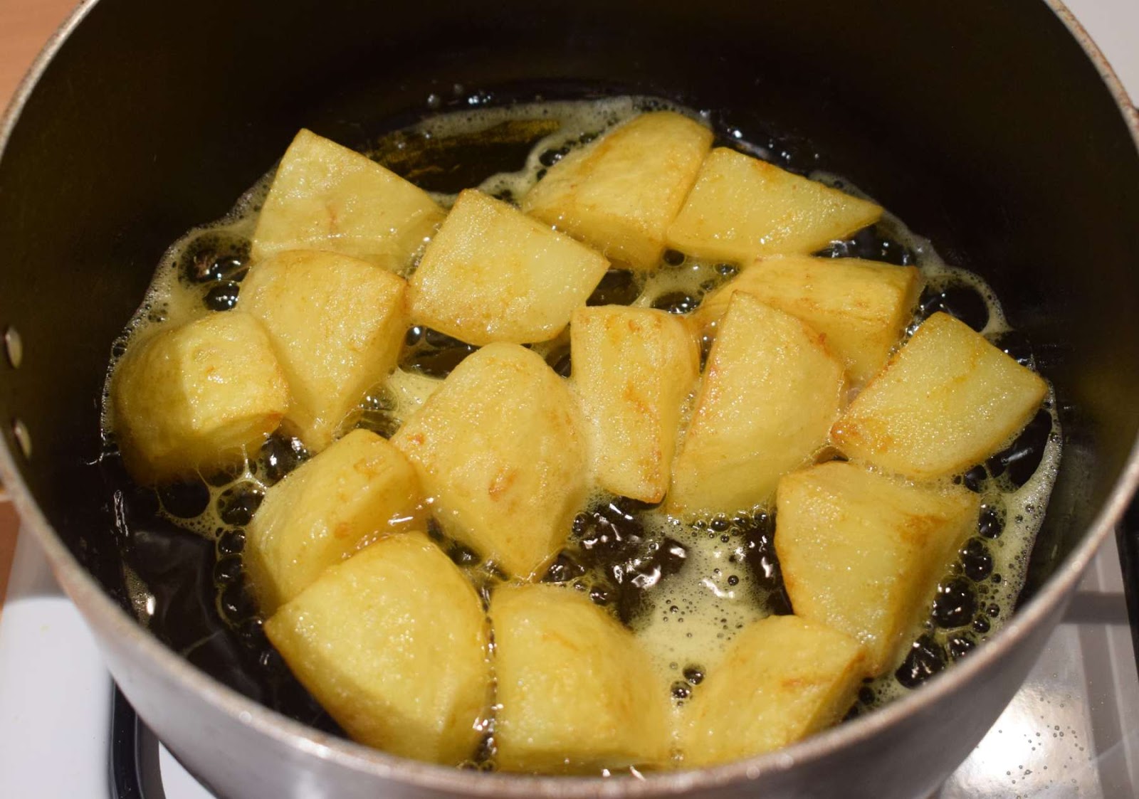 - On the other hand, marinate the potato chunks with salt and turmeric powder.
