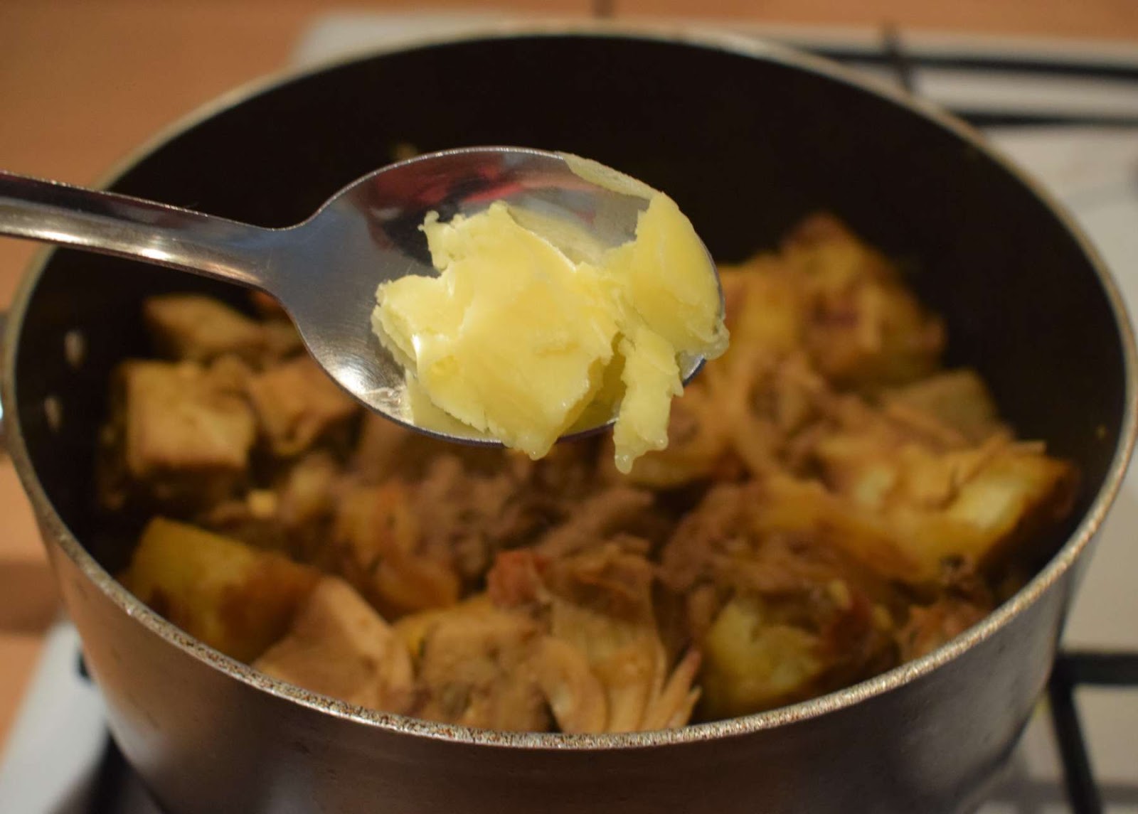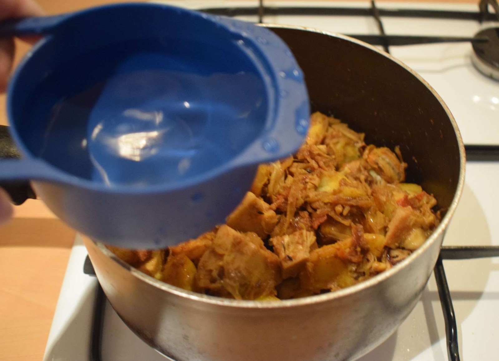 - Add the fried potato chunks (Step 12) and give a nice stir.