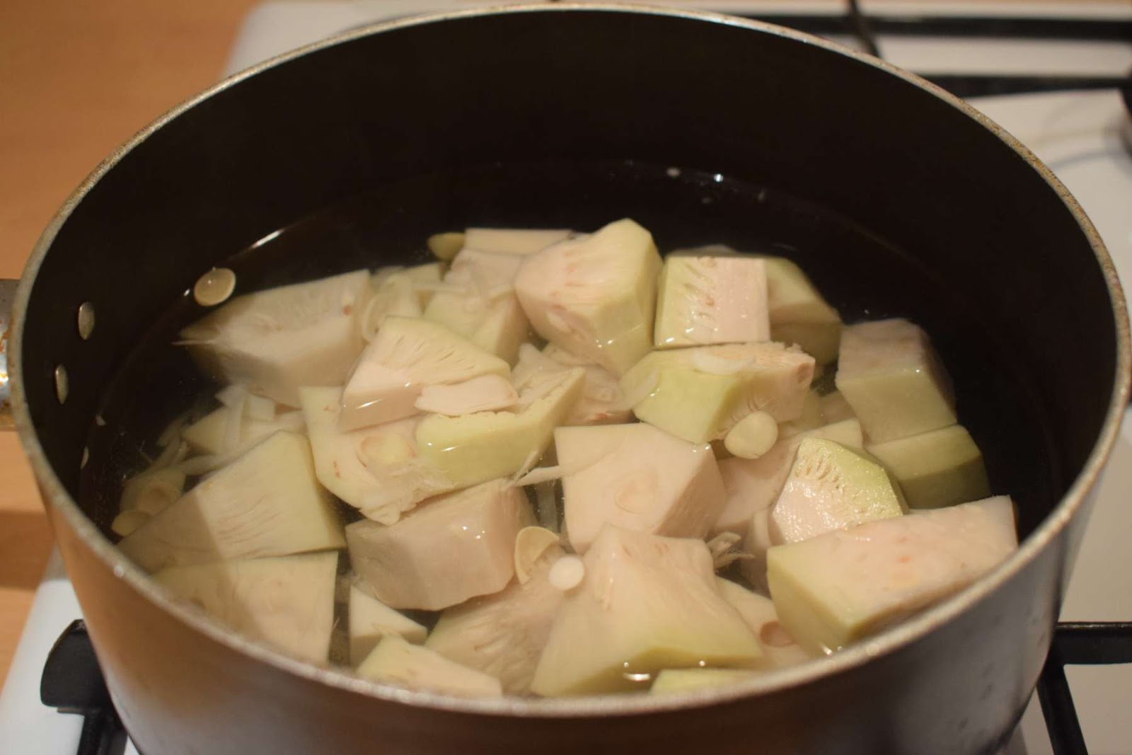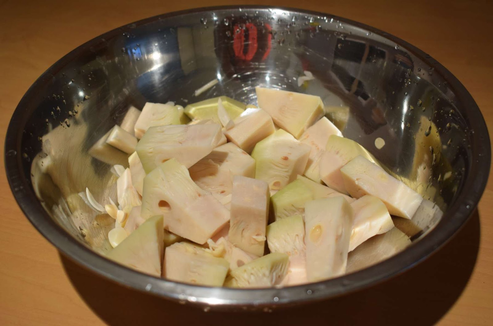 - Take a large pan and add enough water to boil the jackfruit pieces.