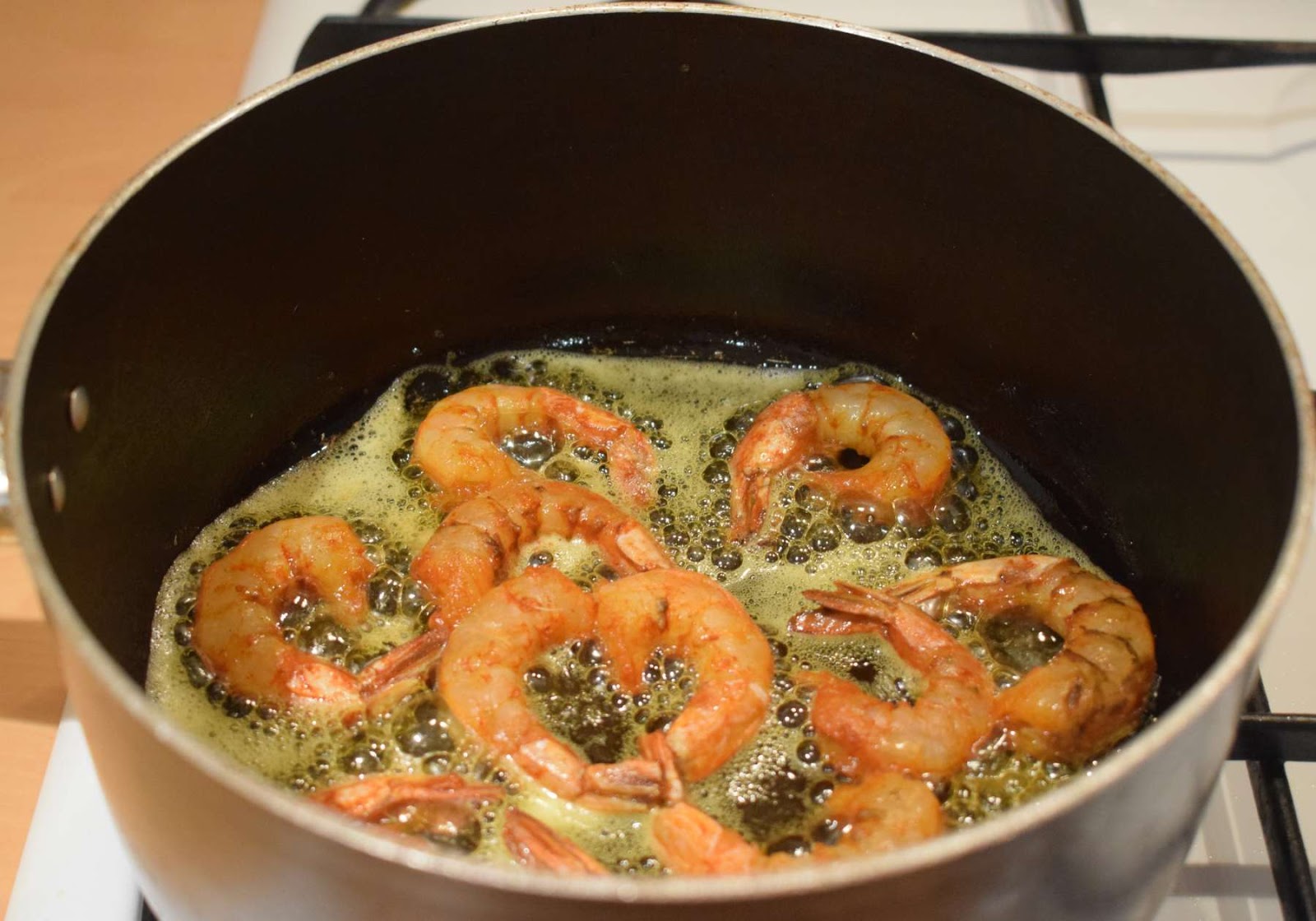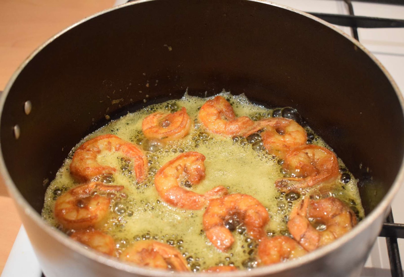 - In the same pan, add the marinated prawns (Step 7) and fry them in low flame for 2 minutes.