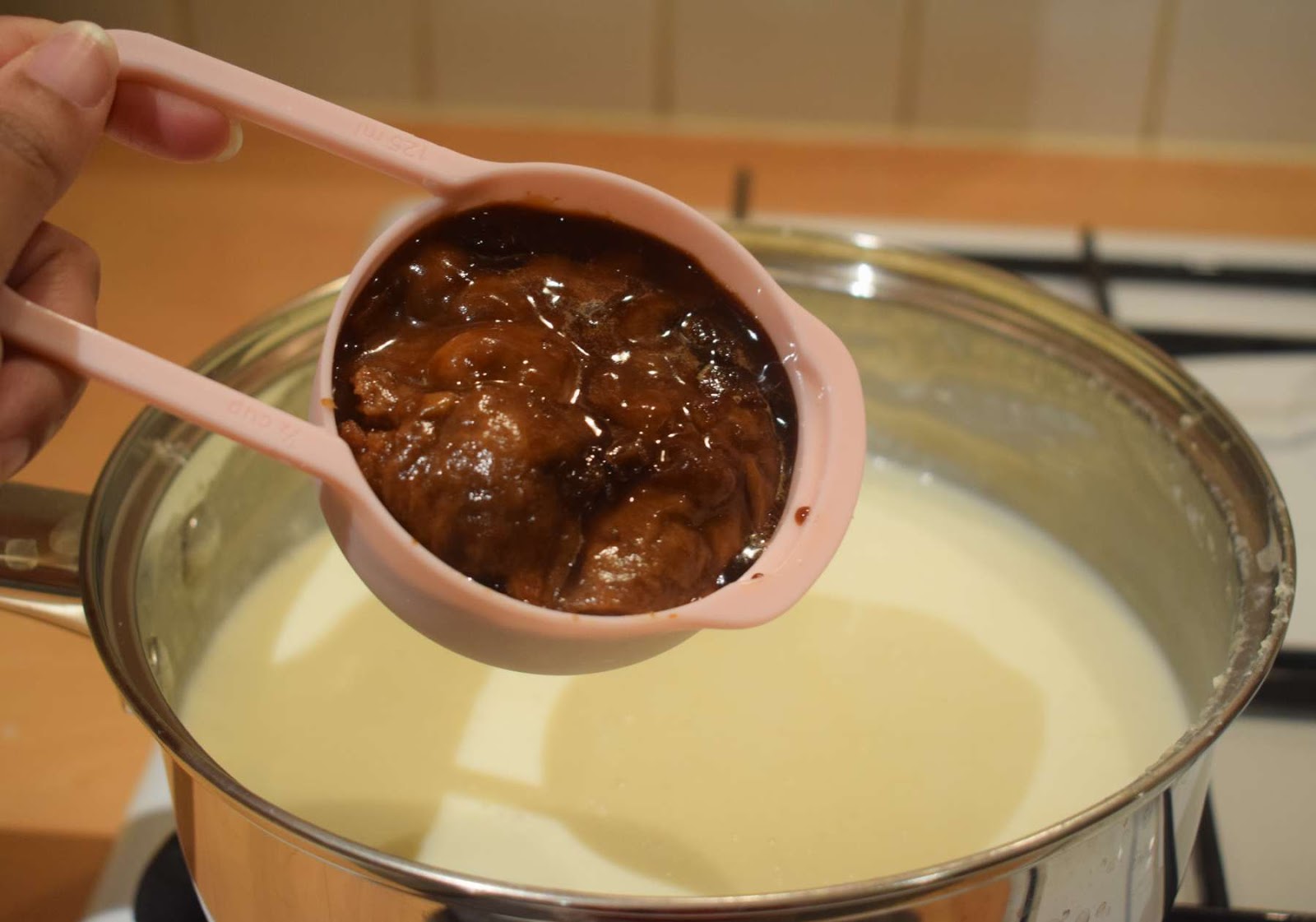 - Put the flame in medium and stir occasionally until the Milk thickens a bit.