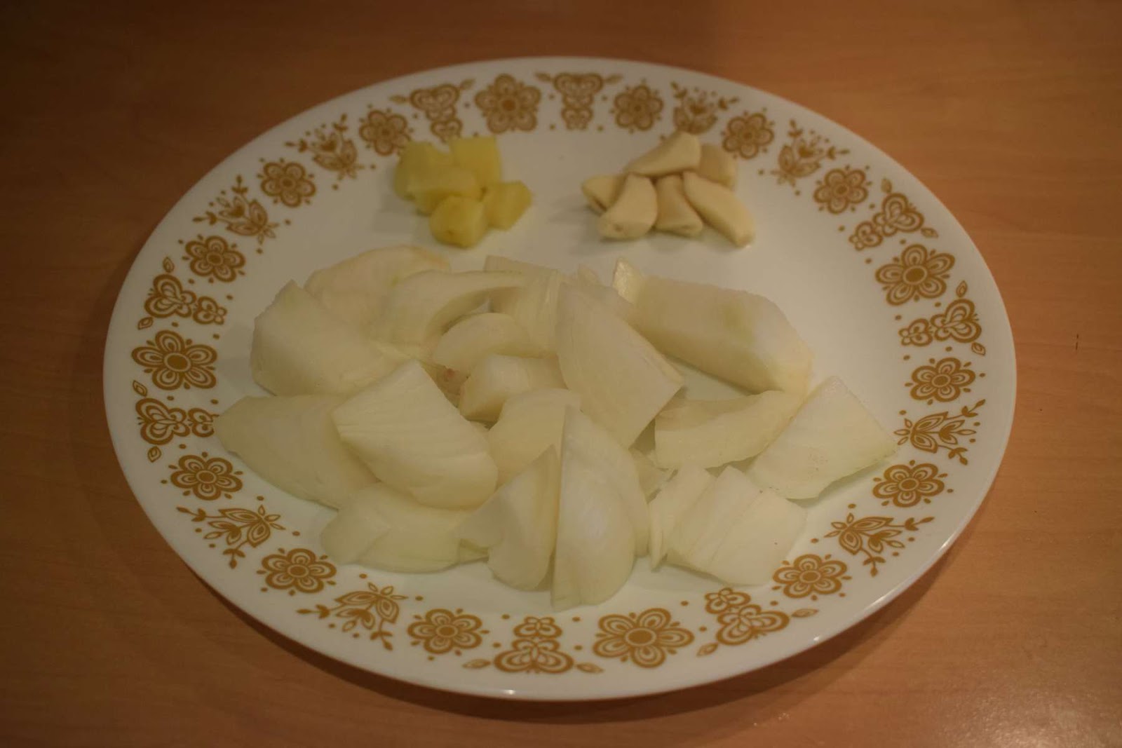For the masala paste I have made a paste of Onions, Ginger, Garlic with some whole spices like Bay leaves, Cumin seeds, Cardamoms, Cinnamon stick, Cloves, Coriander seeds, dry Red chillies and whole Black Peppers.