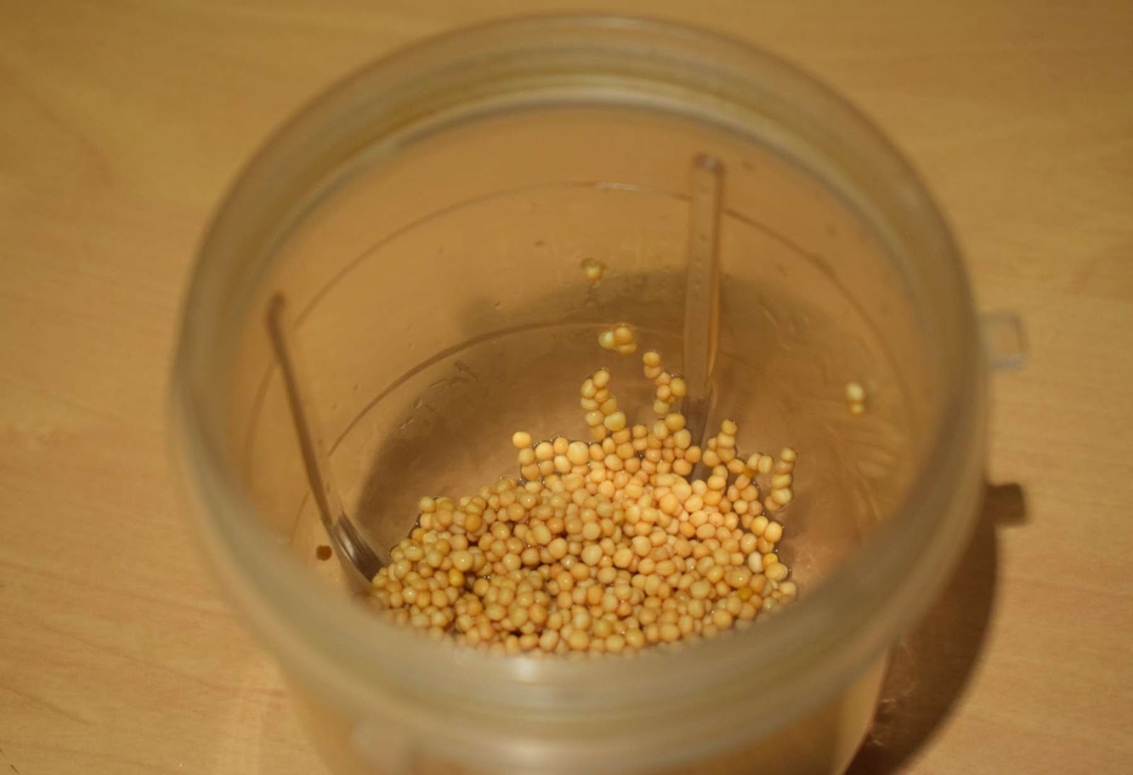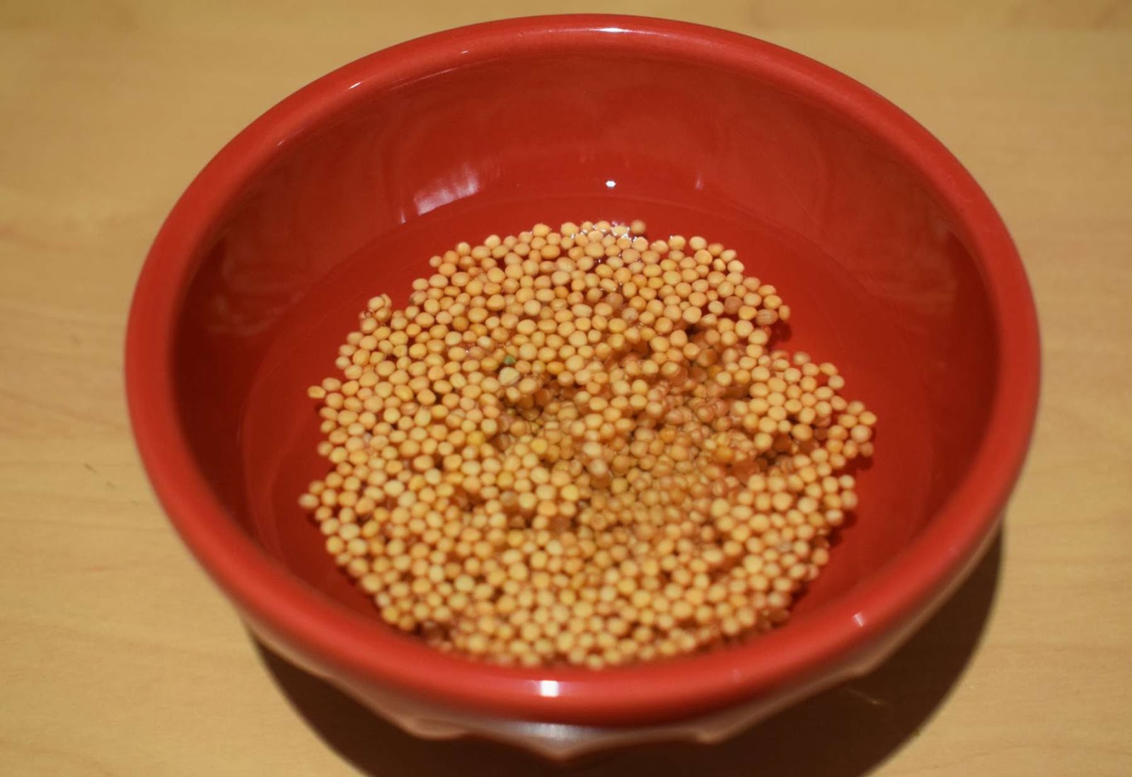 - Put the Mustard seeds and a little water into a jar of mixer grinder.