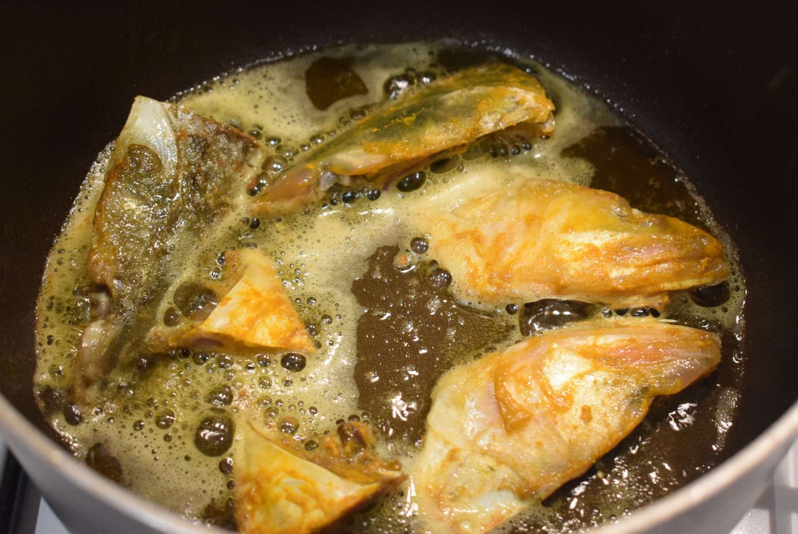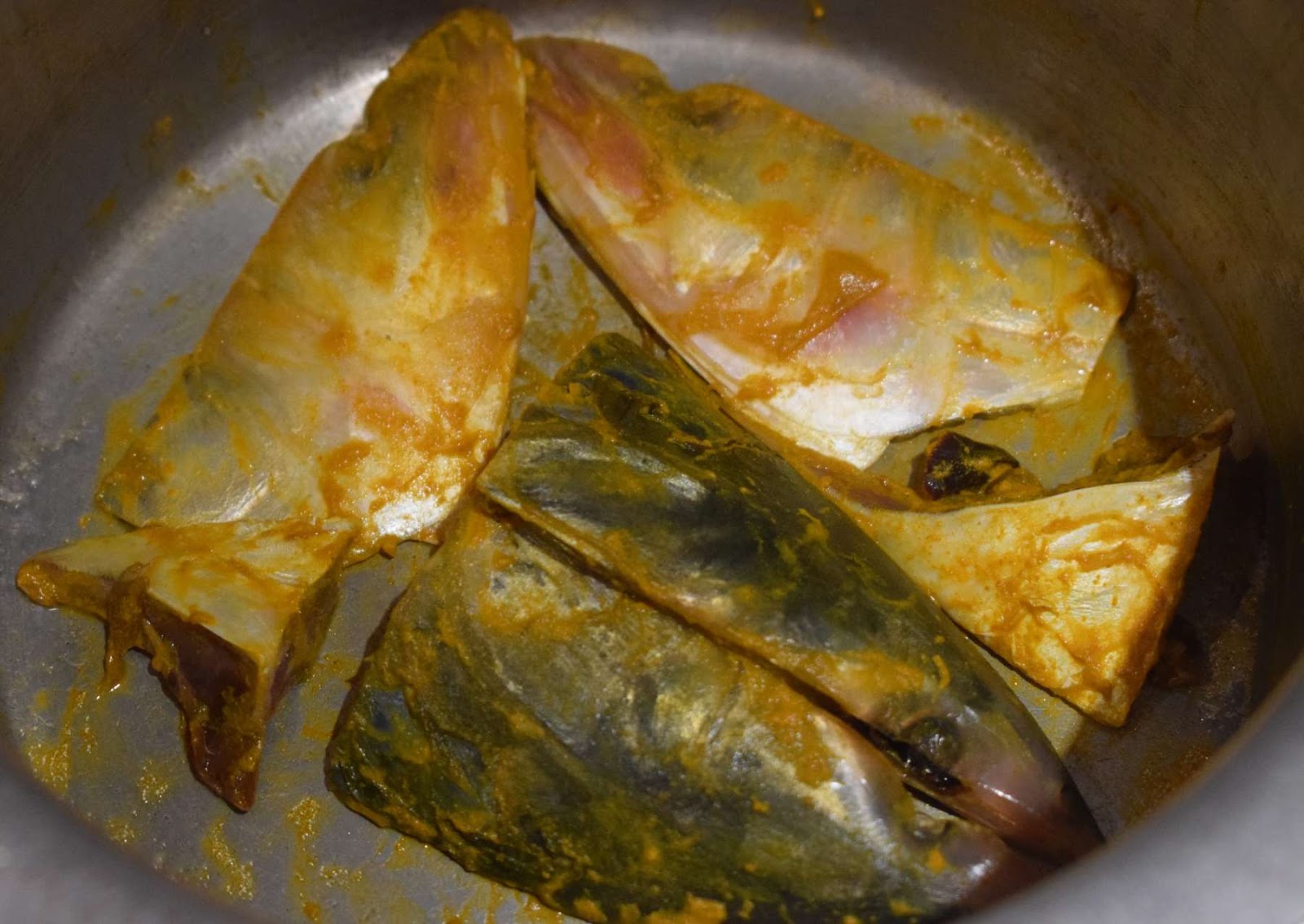 - Marinate fish head with Salt and Turmeric and keep it aside.