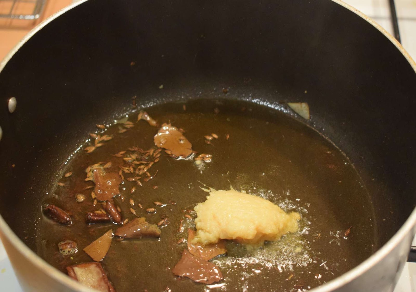 - Add Ginger paste and sauté them for a minute until the raw smell disappears.