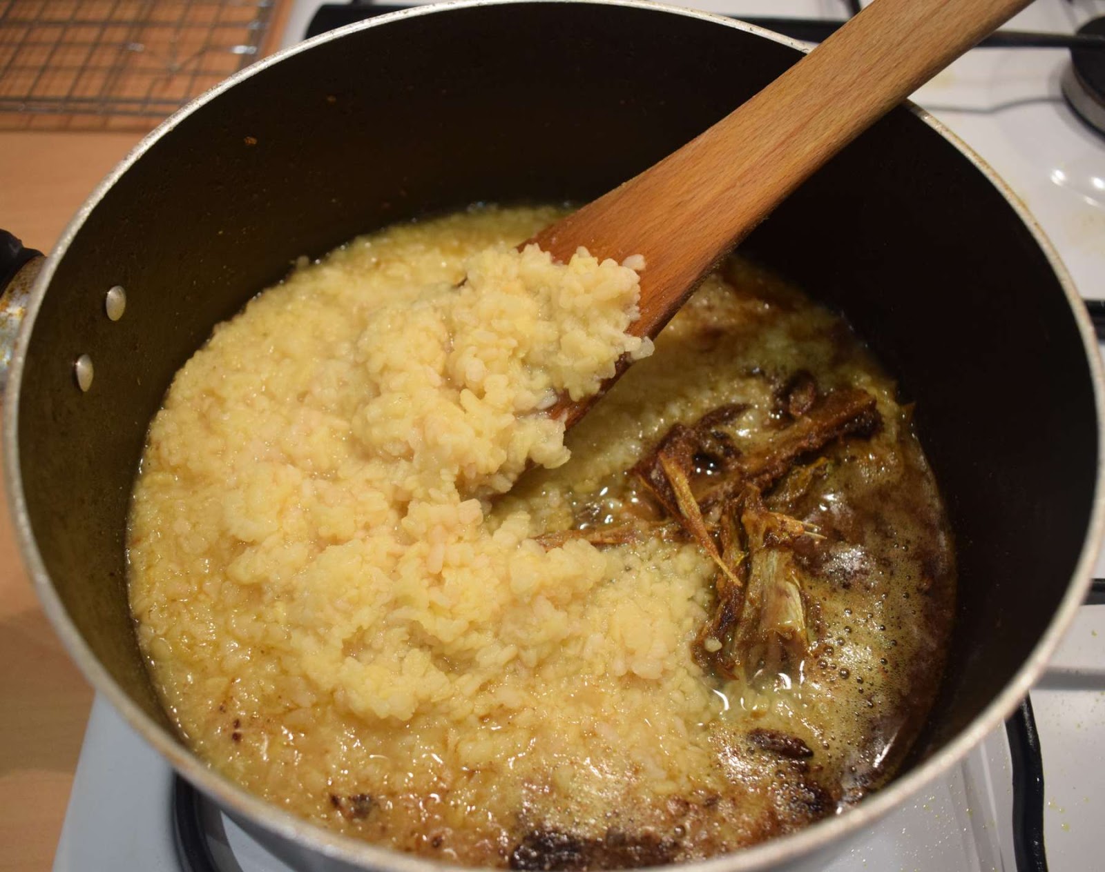 - Stir continuously until the aroma comes out and the colour changes a little bit.