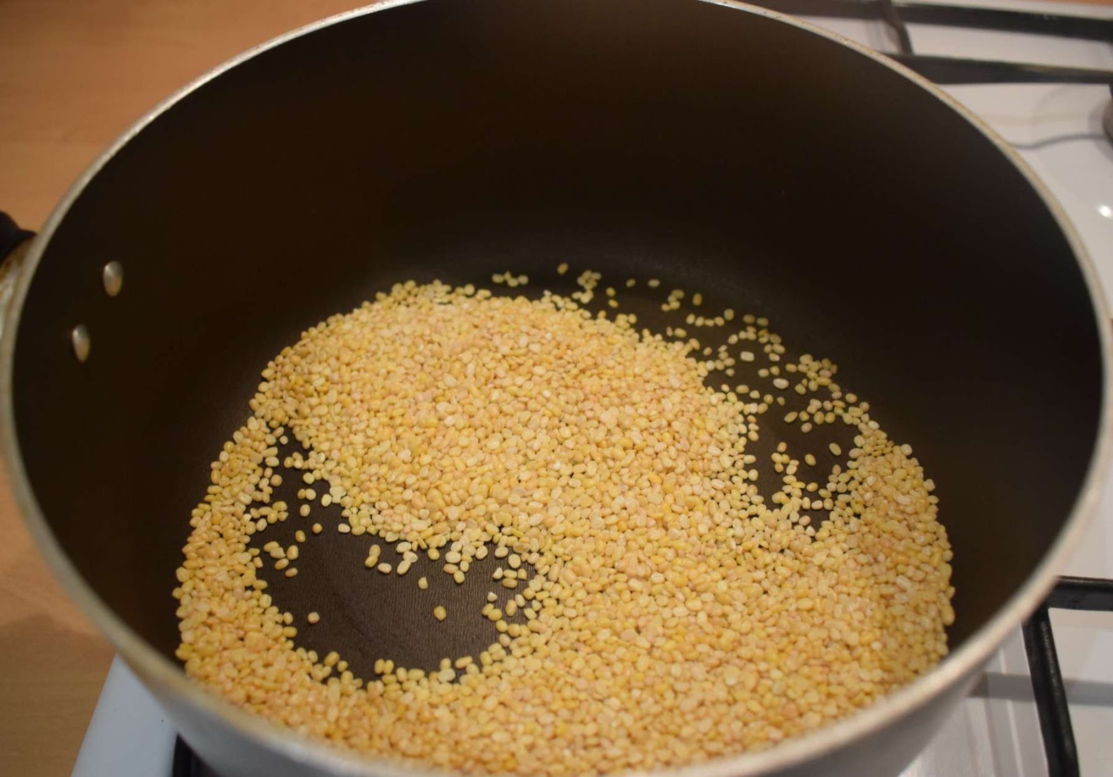 - Take the Moong dal (Yellow Lentils) into a dry pan.