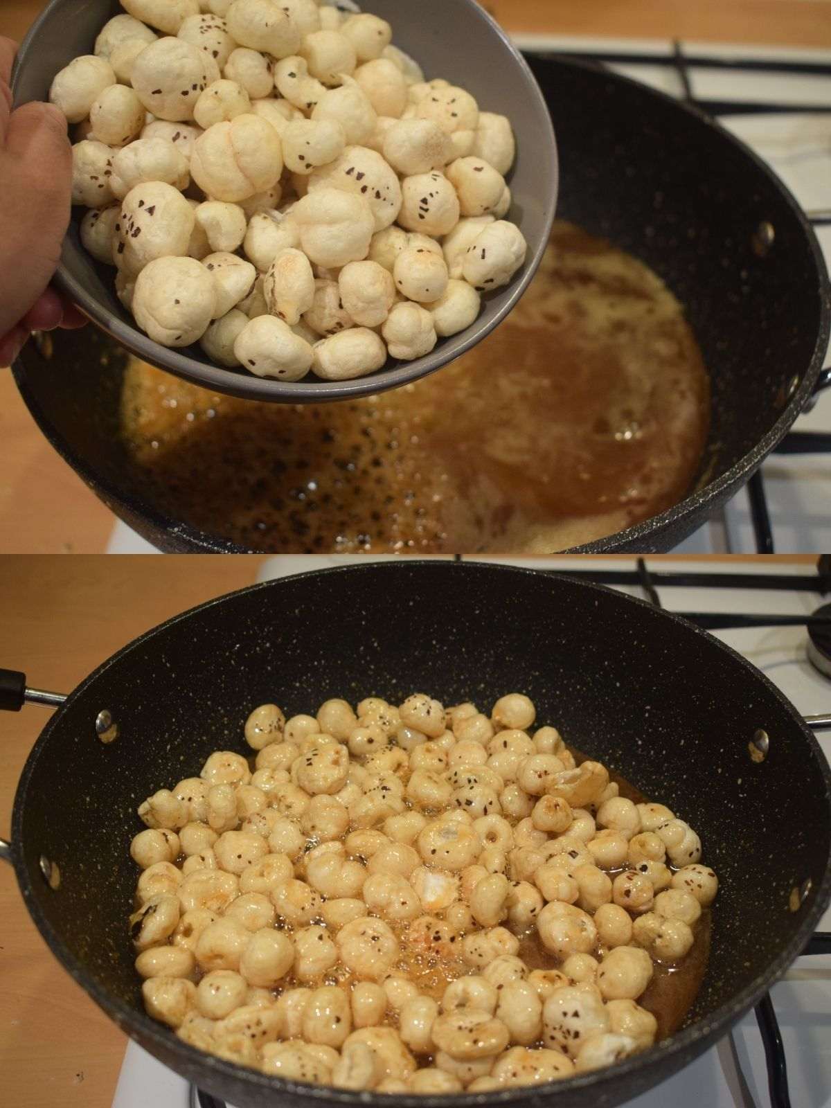 caramel makhana, caramel makhana recipe, gur makhana, jaggery makhana, gur makhana recipe, gur makhana nutrition facts, gur makhana origin, caramel lotus seed, how gur makhana is made, gur makhana benefits, makhana with jaggery, jaggery makhana recipe, how to make caramel makhana, roasted lotus seed, fried lotus seed, how to roast lotus seeds, makhana recipe, recipe for makhana, vrat ka khana, navratri recipes, makhana phool recipe, navratri recipes for 9 days, recipes of navratri food, navratri vrat recipes, navratri special recipes, makhana recipes for fast, vrat ka khana recipe, makhana phool recipe, recipes with phool makhana, phool makhana recipe, healthy snacks recipe