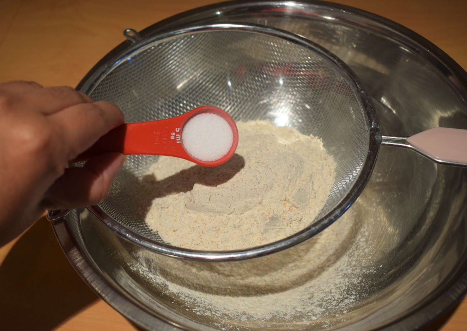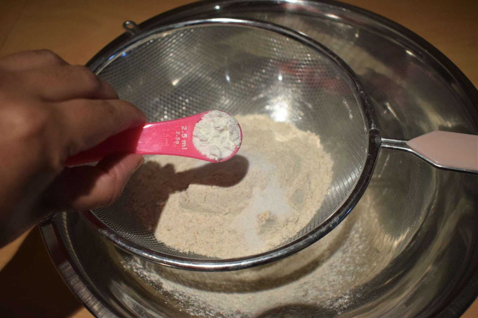 - Sieve the wheat flour, salt and Baking powder together.