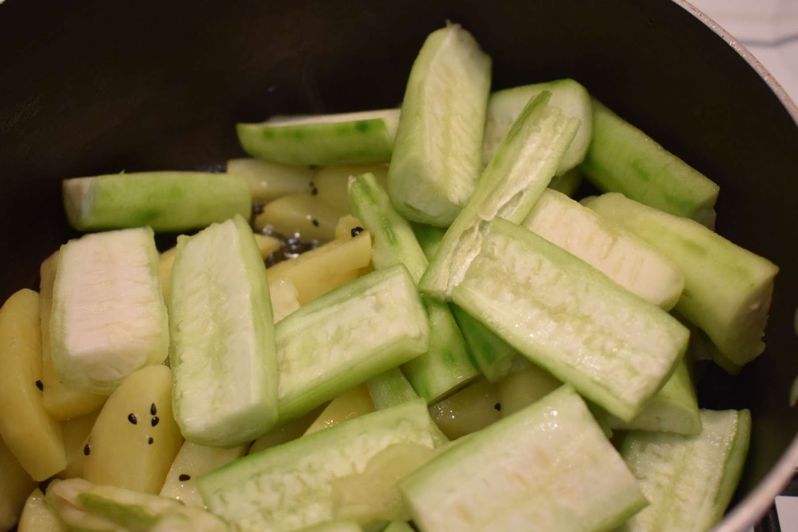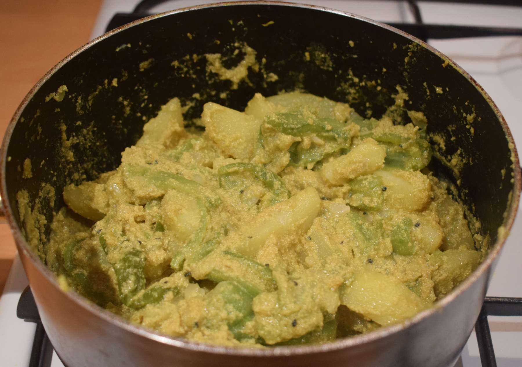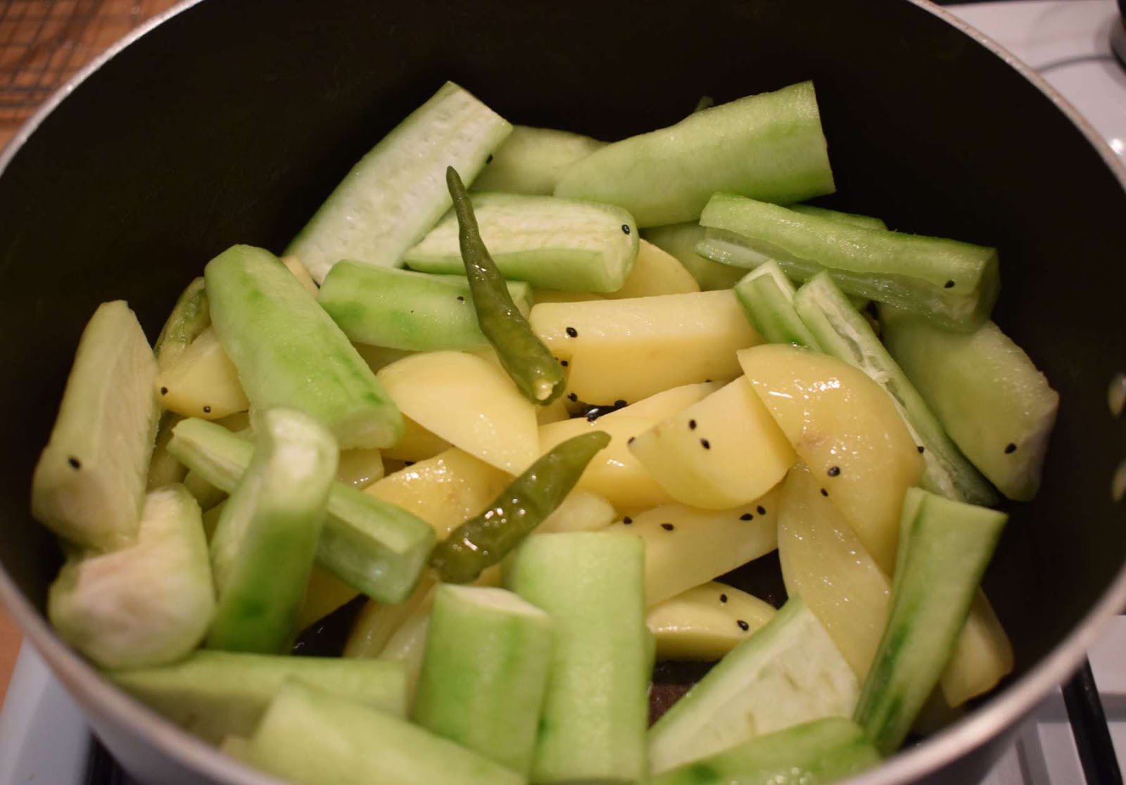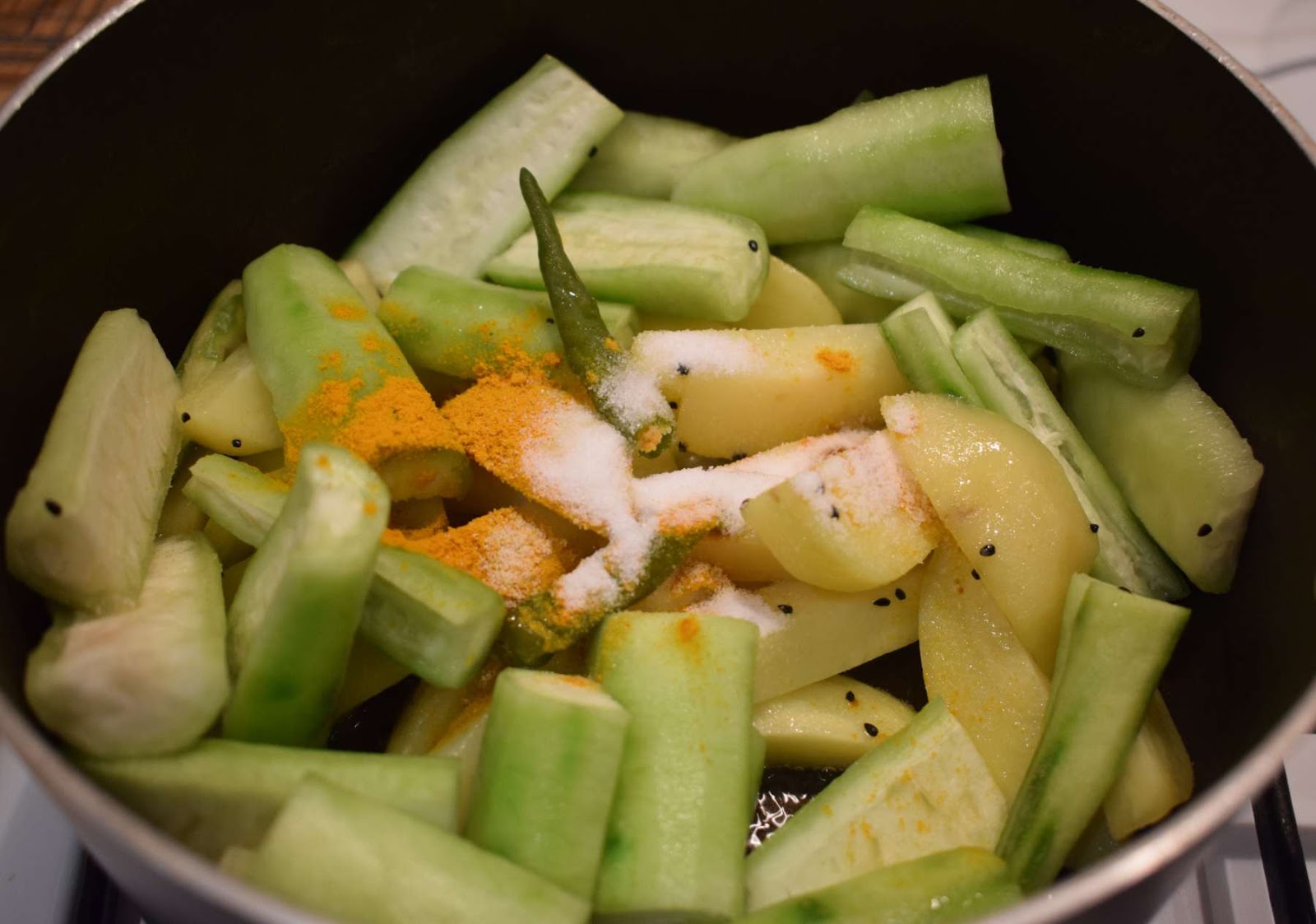 - Add Ridge Gourds, Potatoes, green Chilli and cook it for 5-6 minutes in low flame.