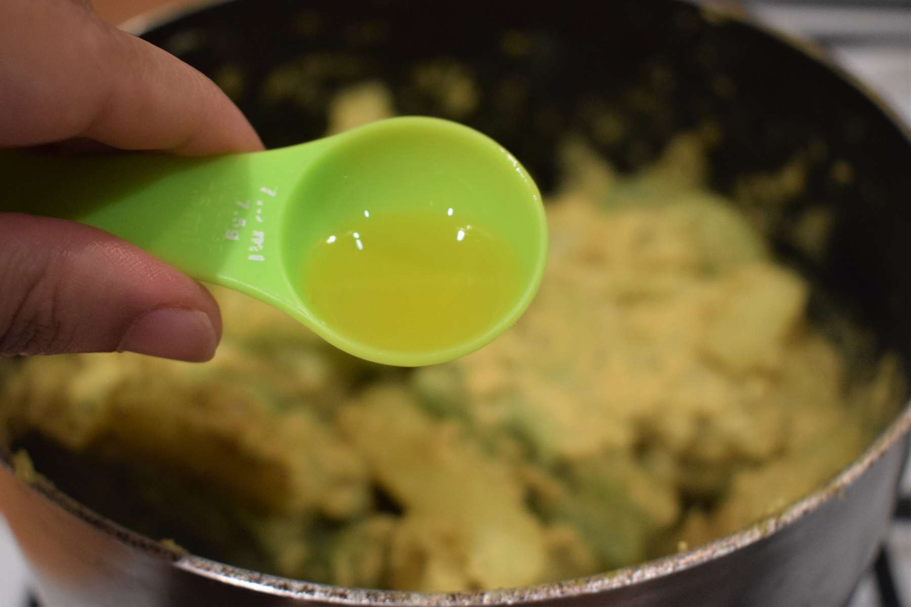 - At the end, before removing from flame, pour 1 teaspoon Mustard oil and give a nice mix.