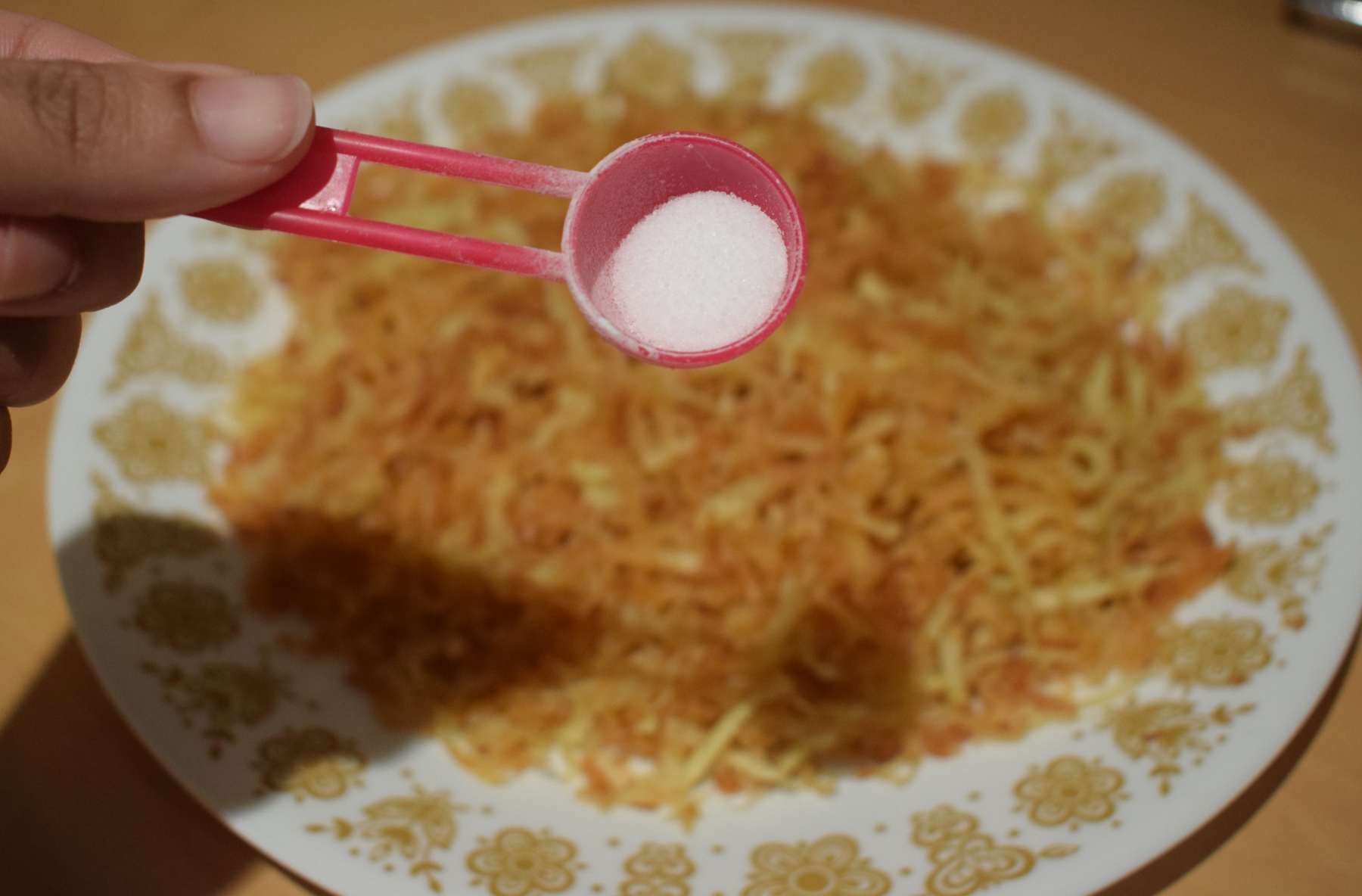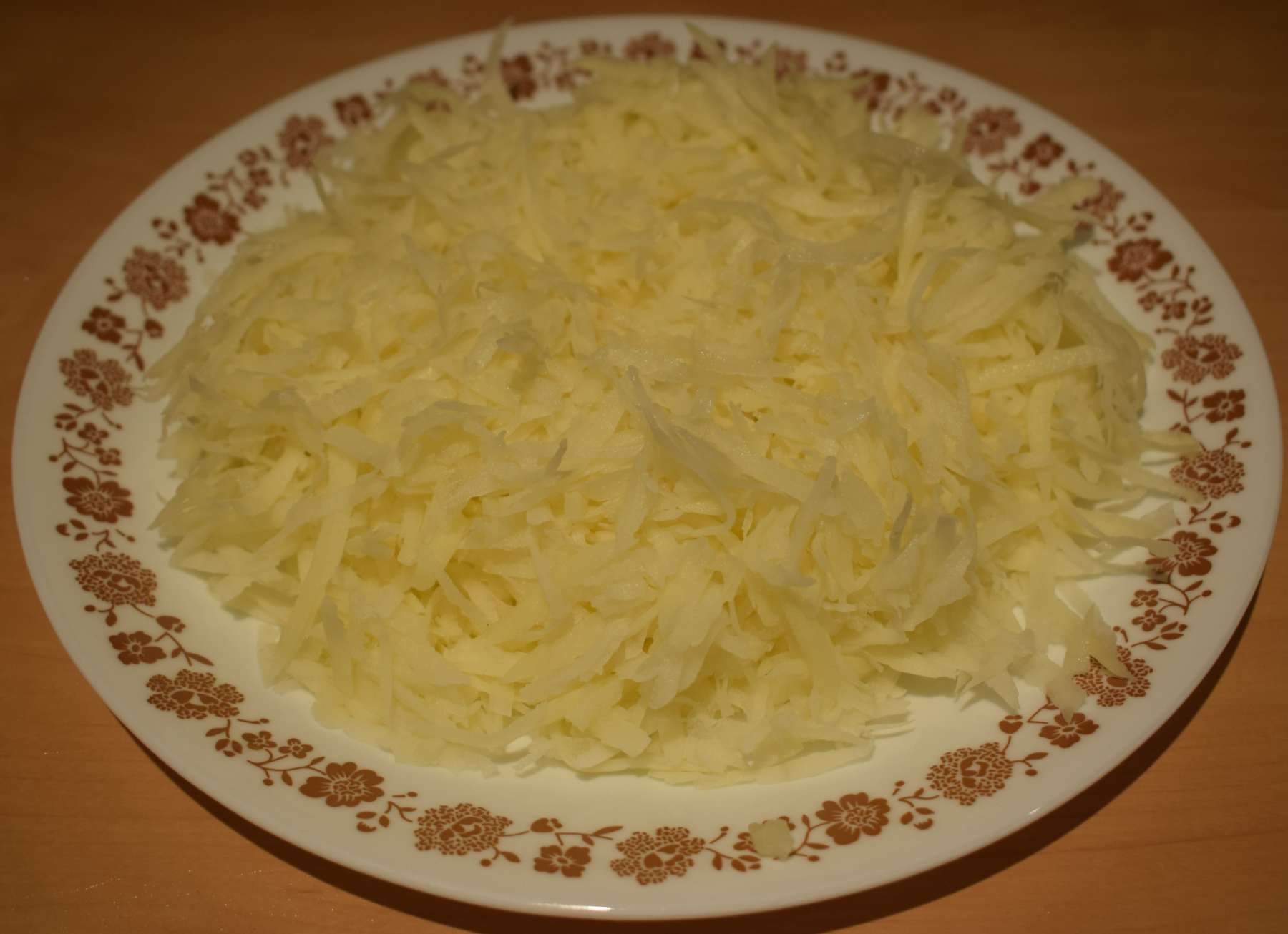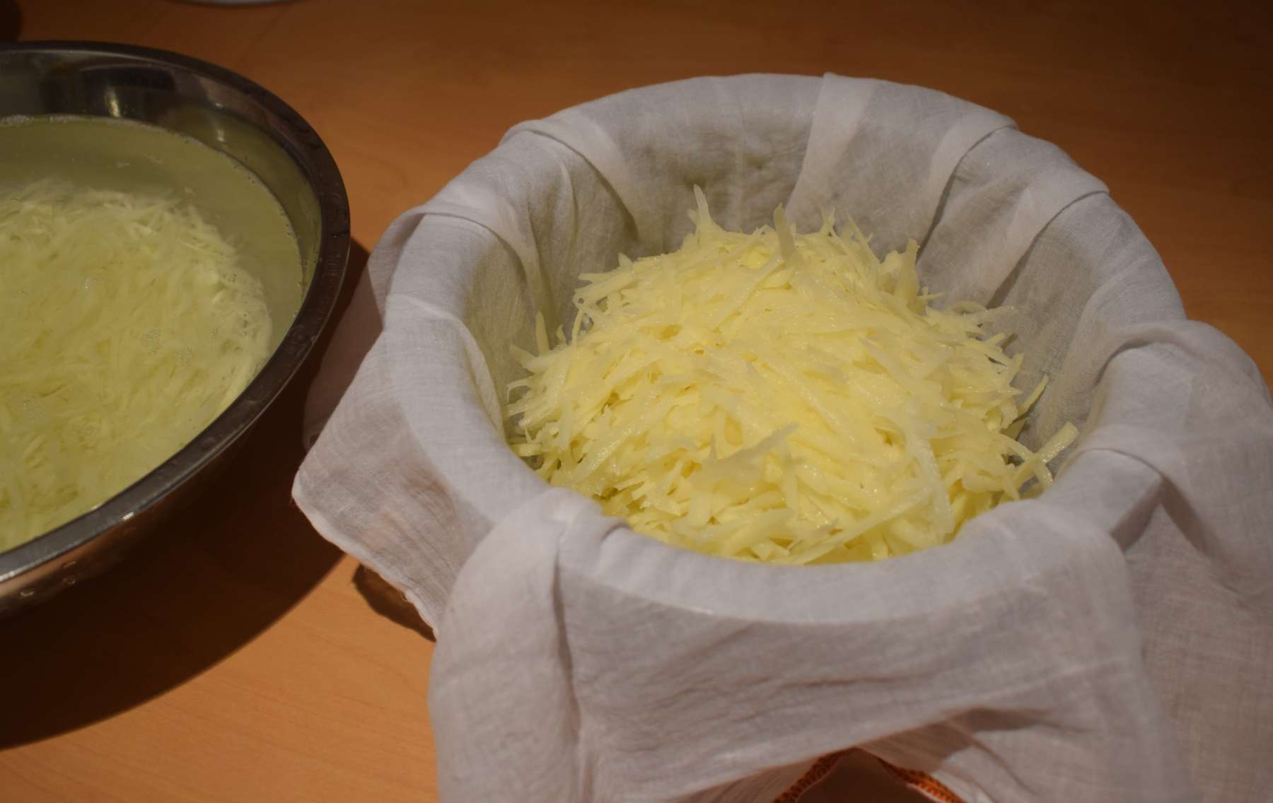 - Wash the grated potatoes in running water for multiple times until the water gets crystal clear.