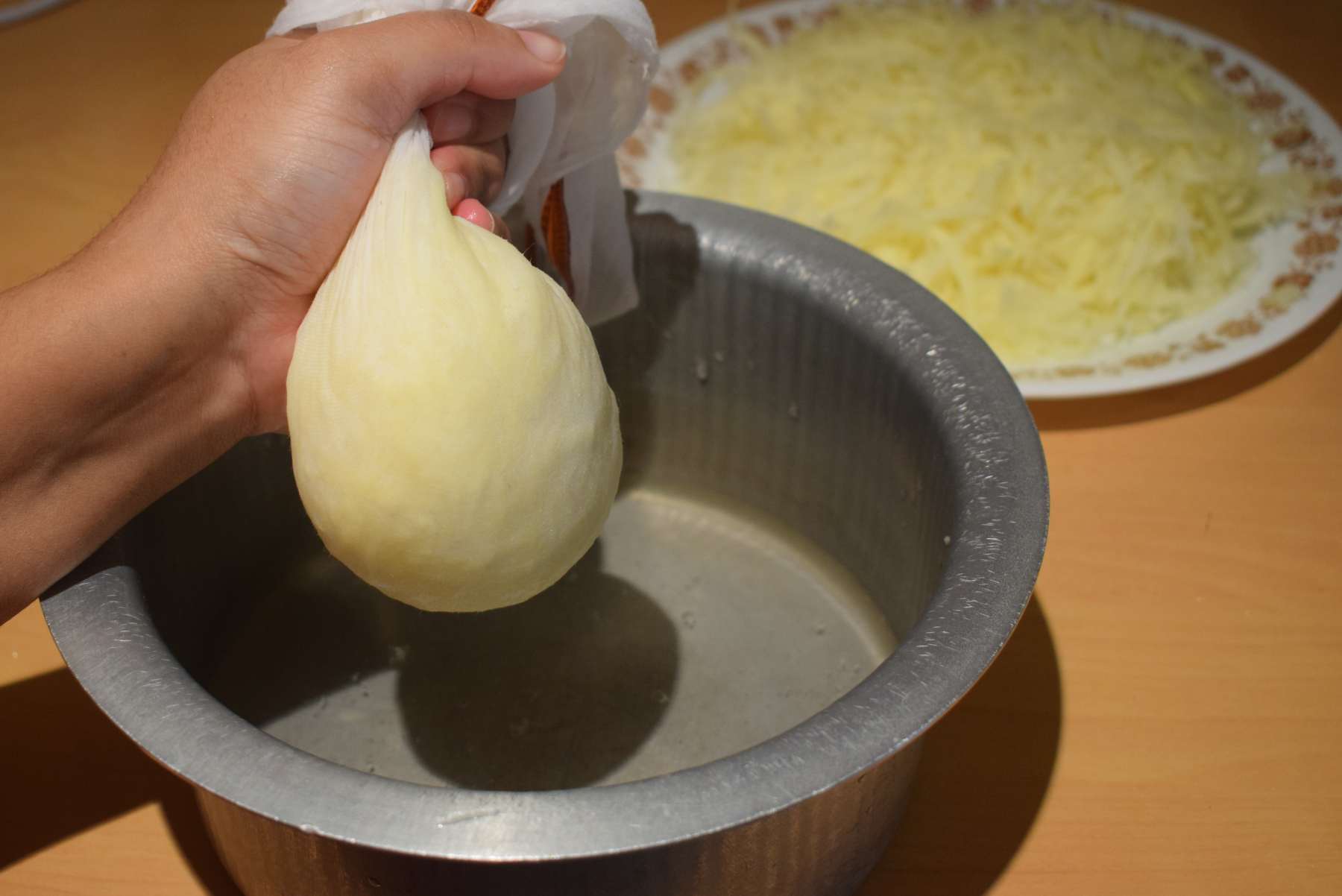 - Take a muslin cloth and squeeze out the excess water from the potatoes after washing. The potatoes must be moisture free.