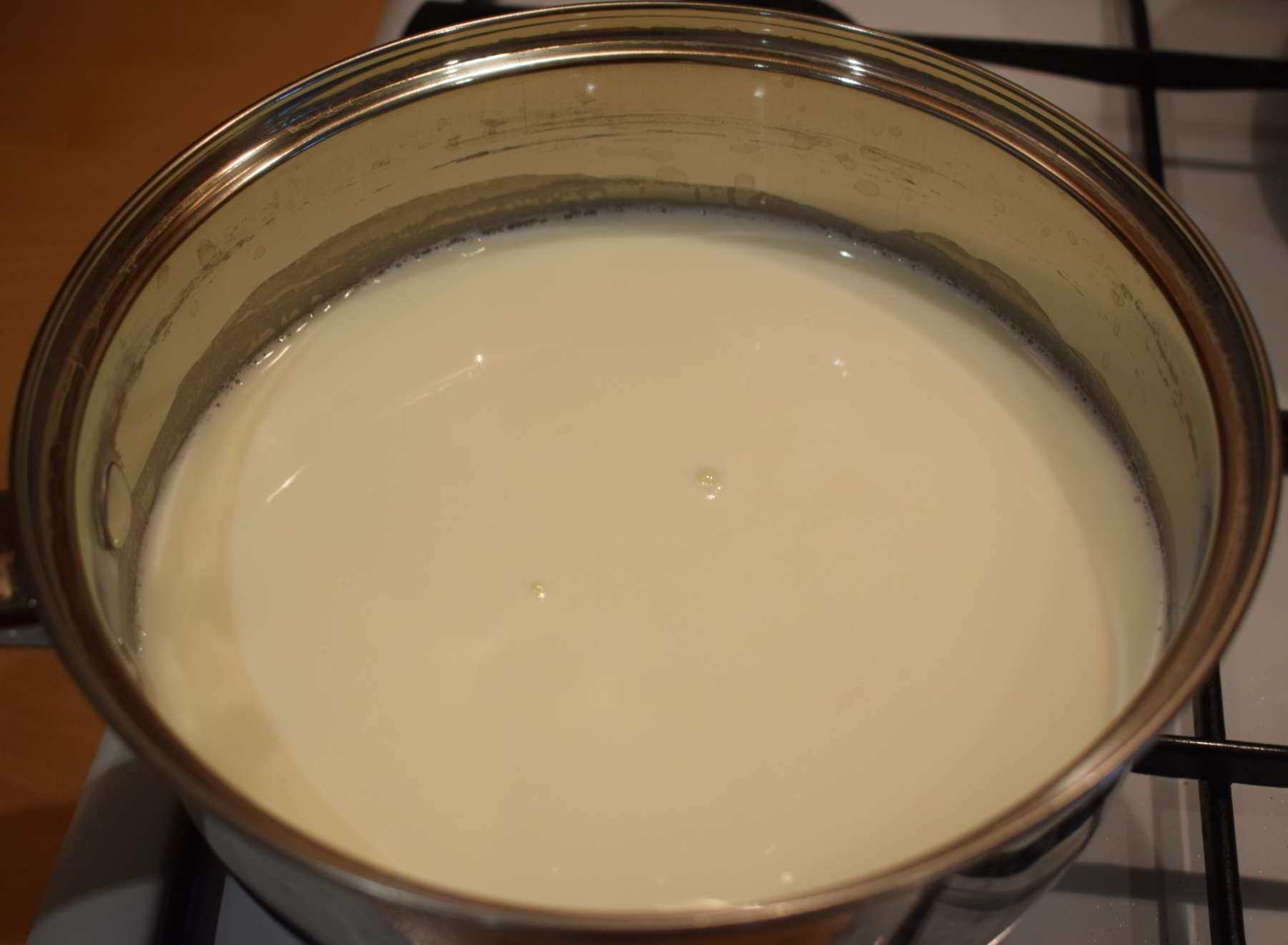 - Take the 1 litre milk in a heavy bottom pan. Put the flame in medium high and let the milk boil. Tip: While boiling the milk, put the flame in medium and stir occasionally. Otherwise, the milk can stick to the bottom of the pan, and a burning smell may get induced into the milk. Tip: While boiling the milk, put the flame in medium and stir occasionally. Otherwise, the milk can stick to the bottom of the pan, and a burning smell may get induced into the milk.