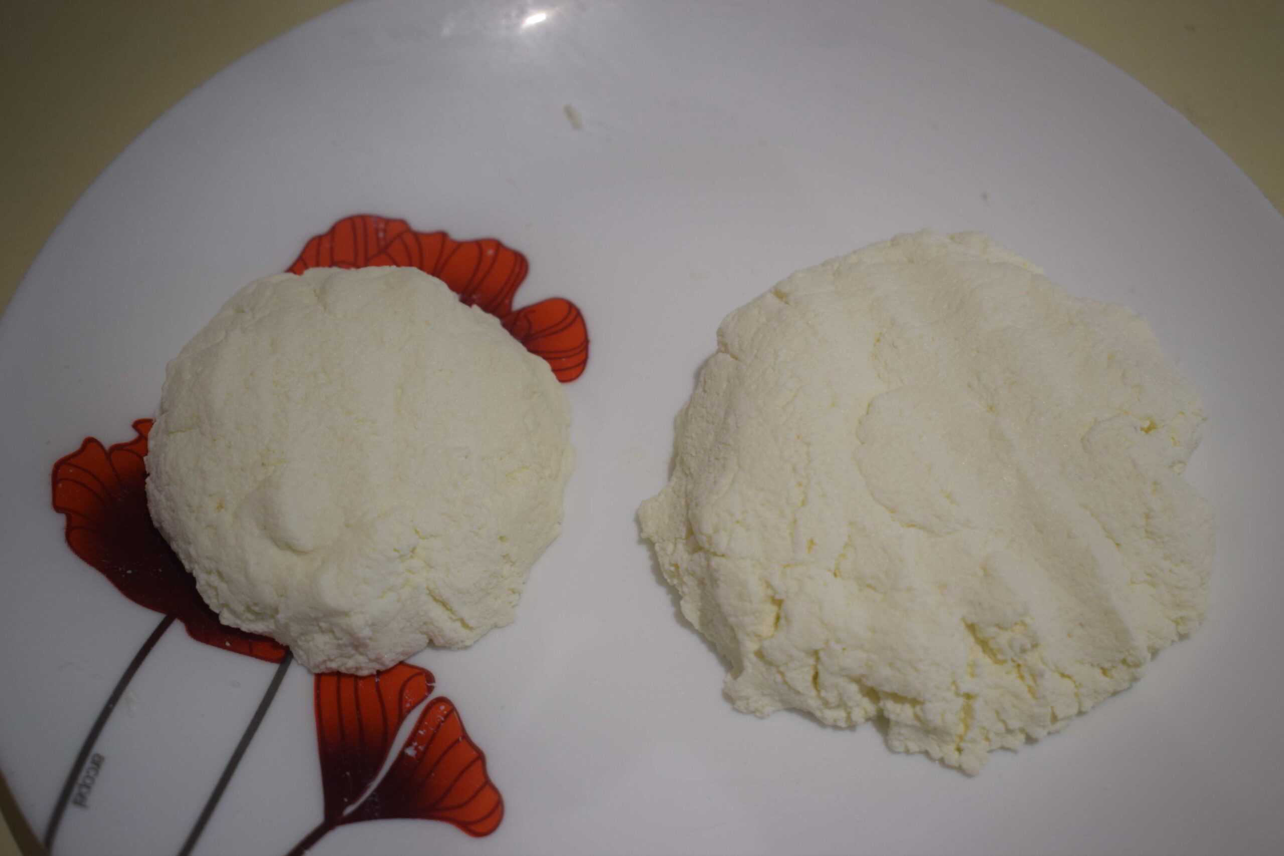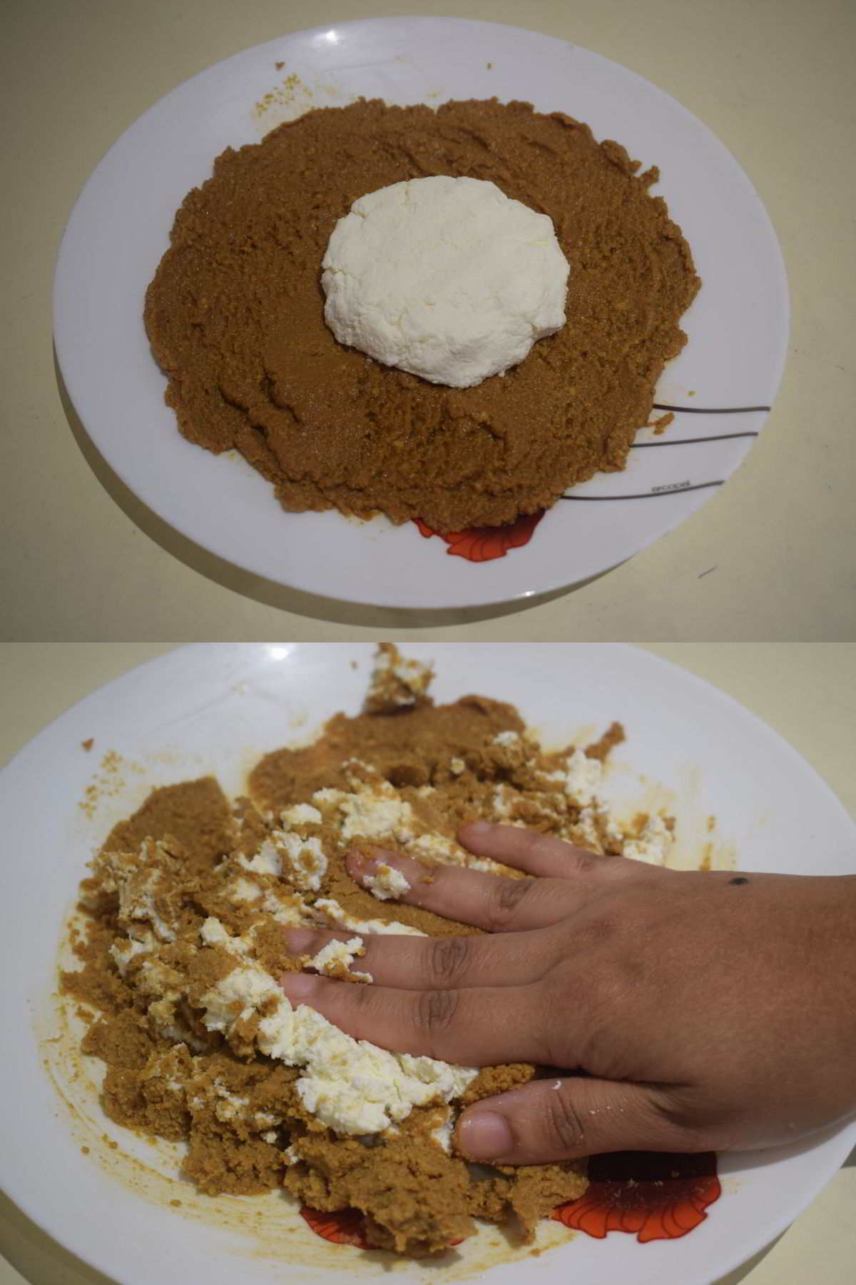- Add the reserved one third raw chenna into the mixture and mix it thoroughly with hand.