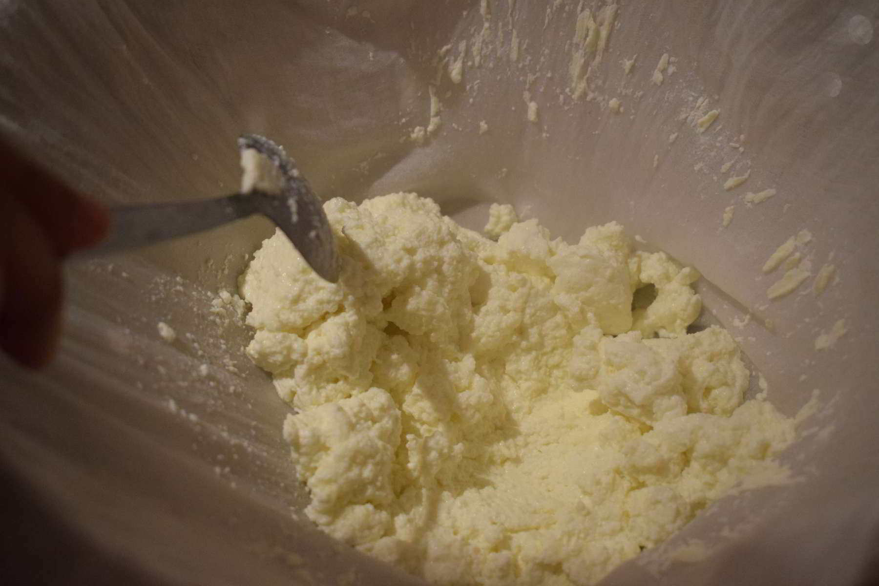 - With the help of a spatula or spoon, stir the Chenna gently for a minute to cool it off.