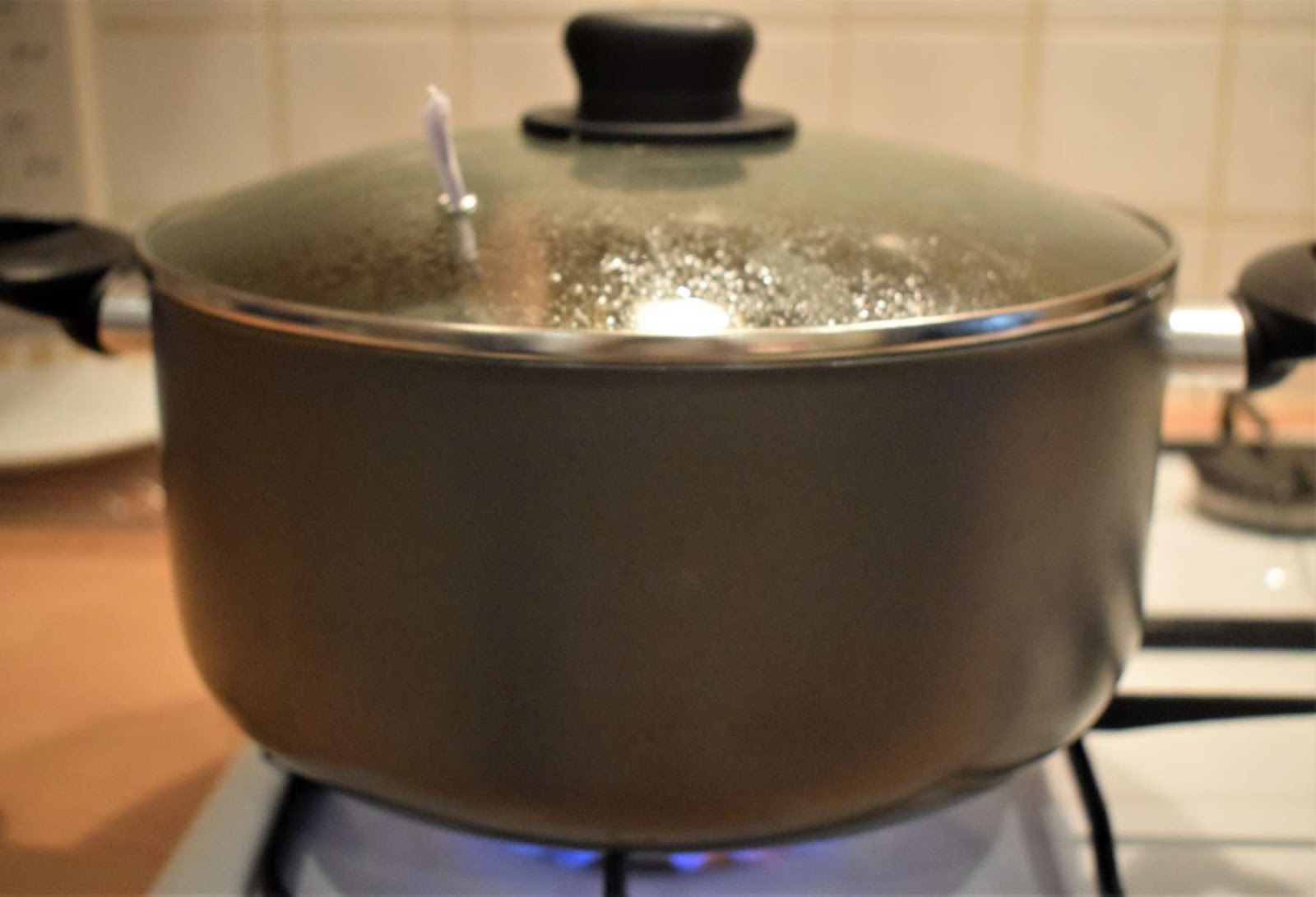 - Put on the lid of the pan and put the flame in medium for 5 minutes.