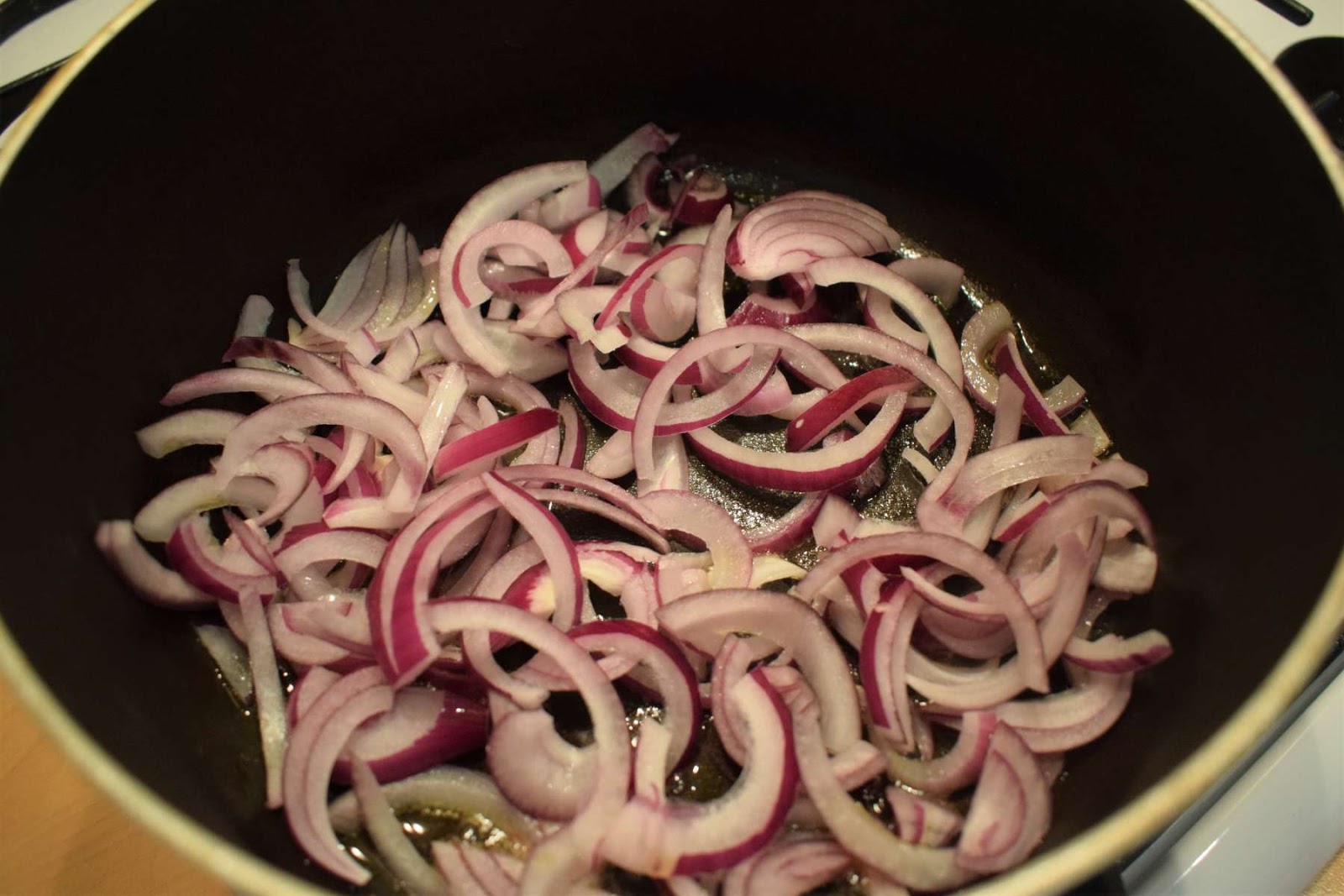 Other than fruits and spices, one more element that is equally important to flavour up the dish is fried Onions. I have used clarified Butter (Ghee) for frying the Onions. It gives a nice soothing flavour to it.