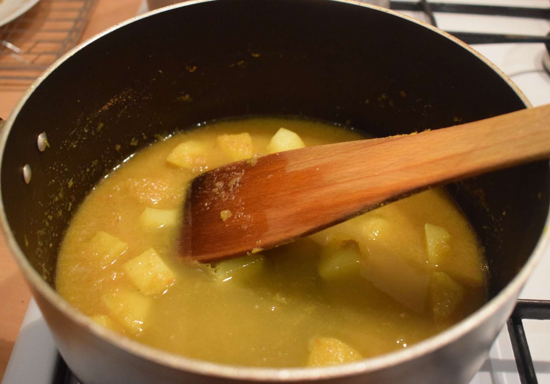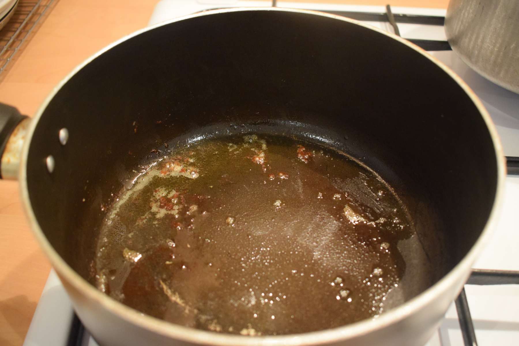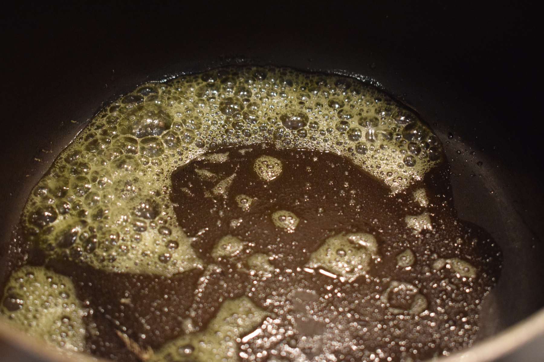 - Put on the lid of the pan and put the flame in high until the gravy simmers.