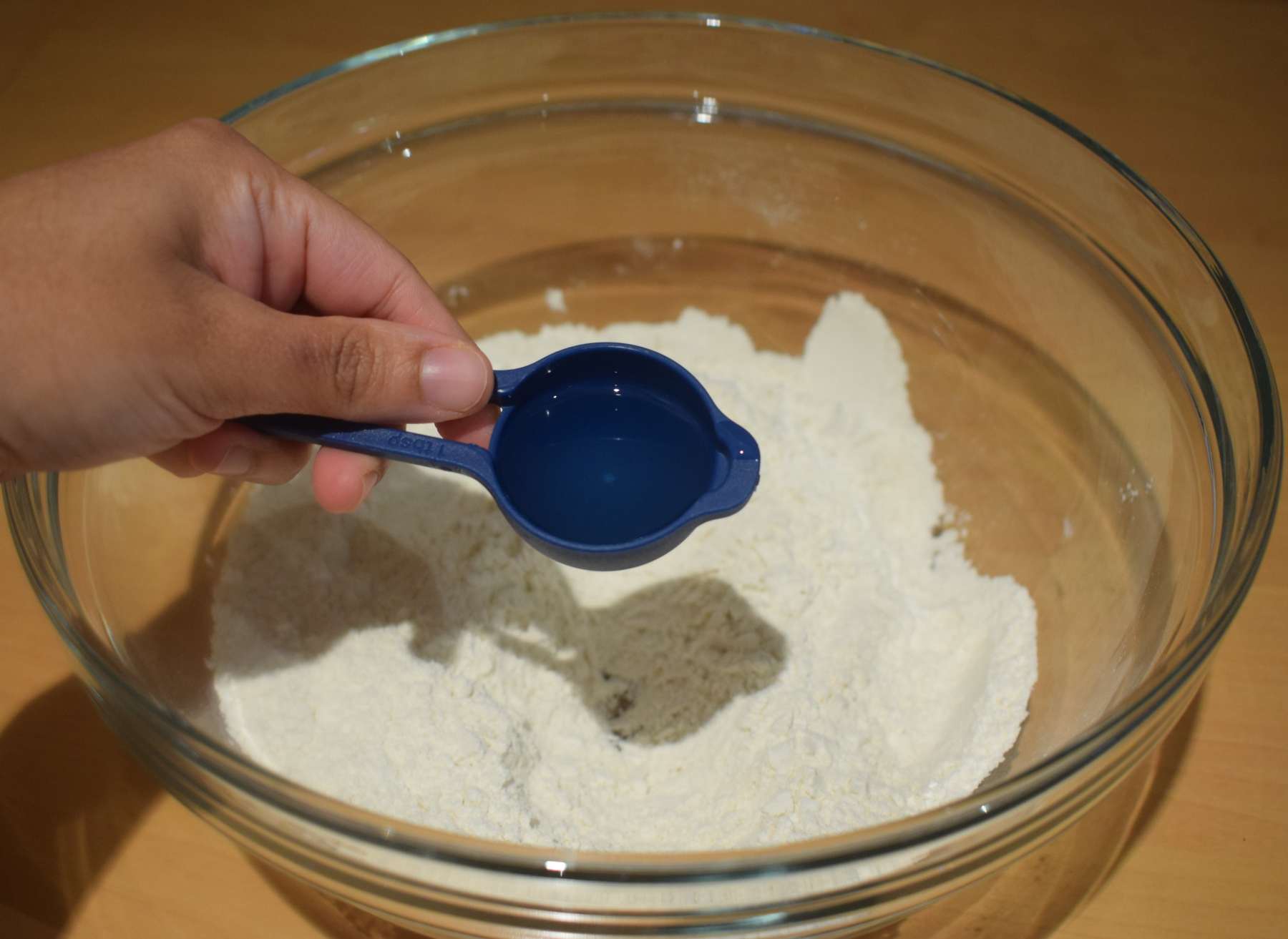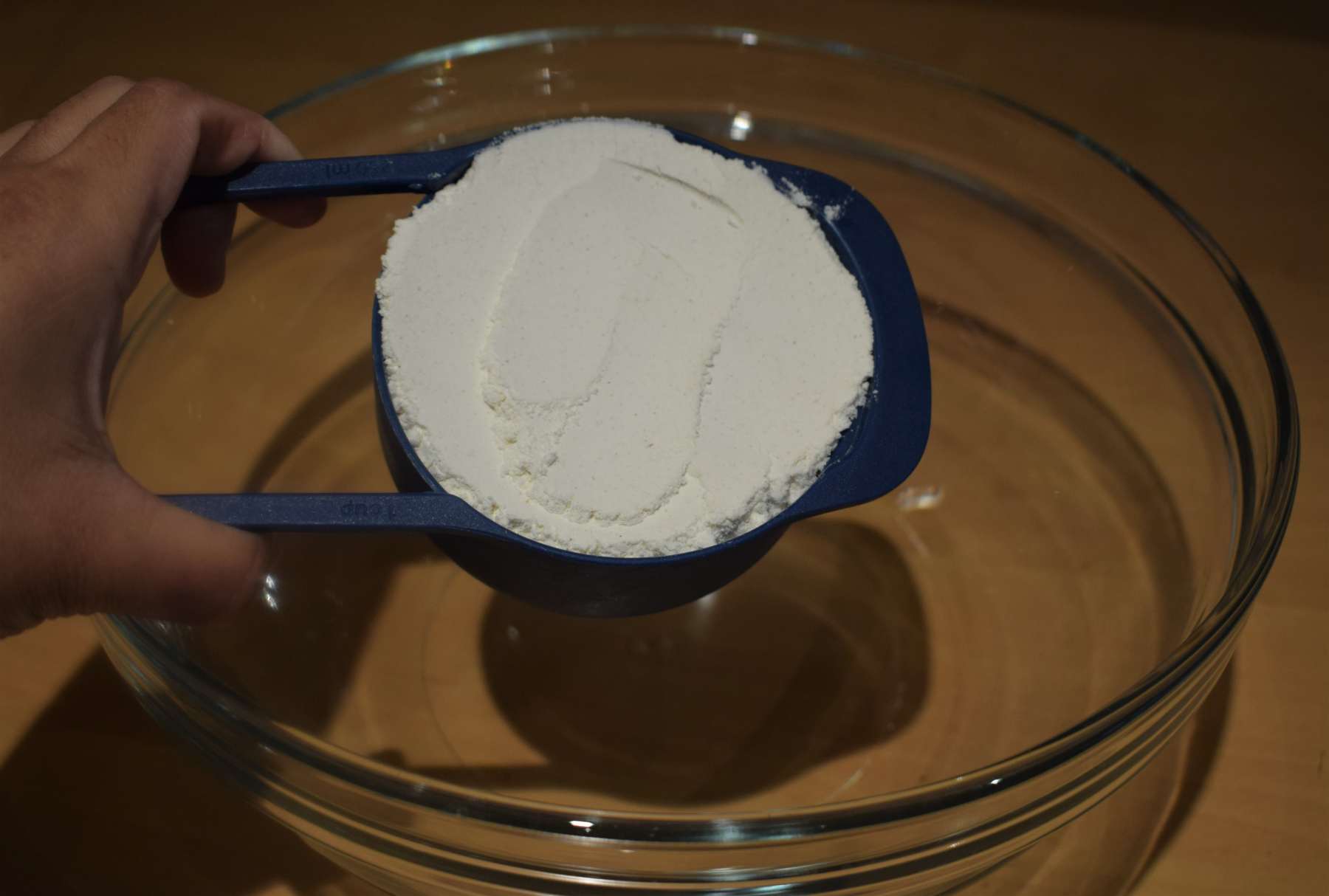 - Measure 1 and ½ cups of all-purpose flour for the dough and add it in a large mixing bowl.