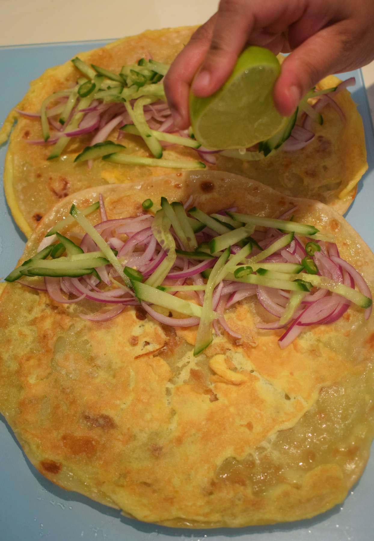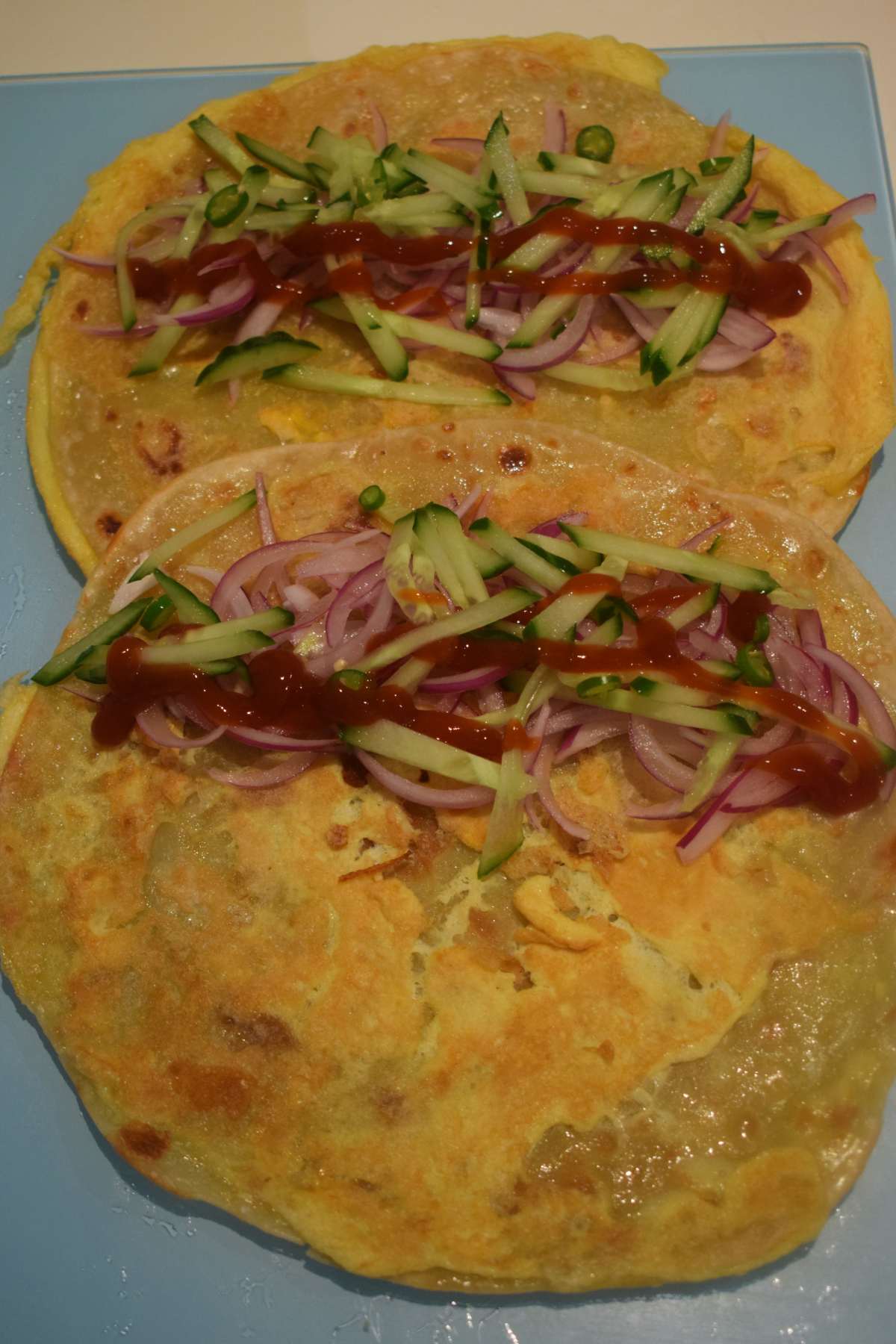 - Repeat the whole process with the remaining disks to prepare the Kolkata egg roll and serve immediately.