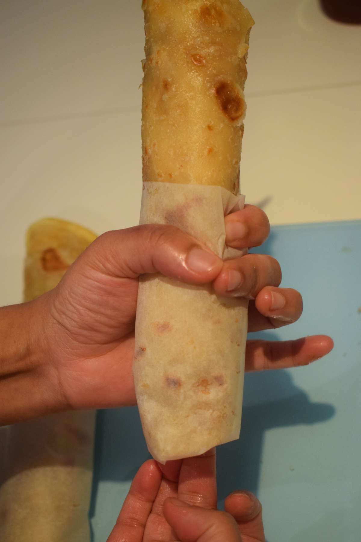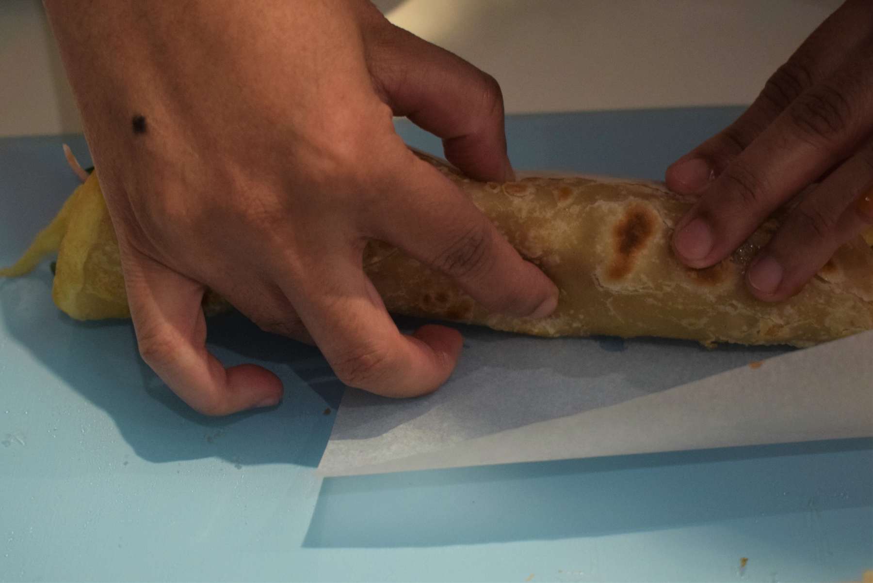 - Wrap the lower half of the wrap with a piece of paper and tuck the extra paper at the bottom.