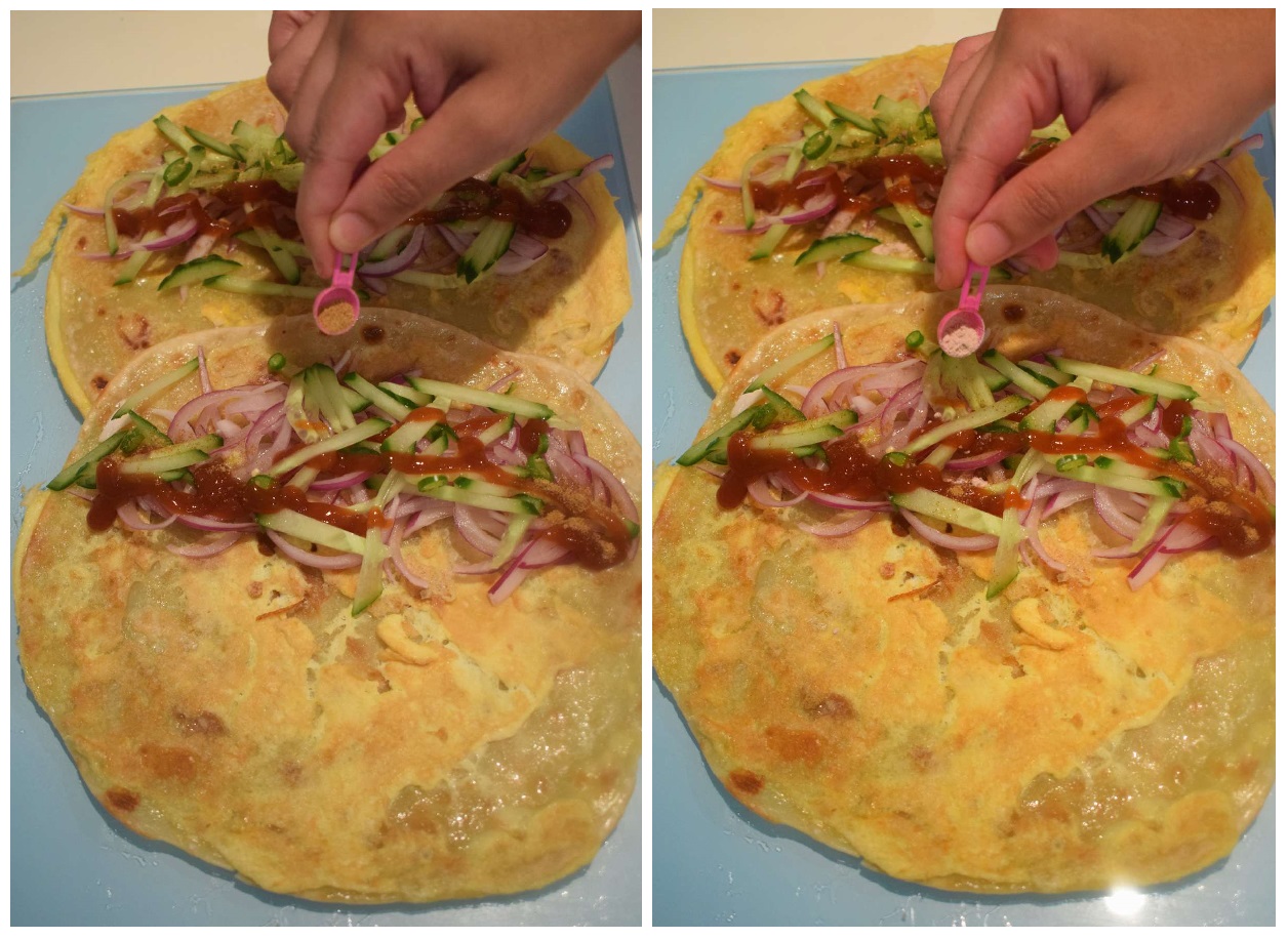 - 1 ½ teaspoons Chaat masala (2 pinches for each Egg roll)