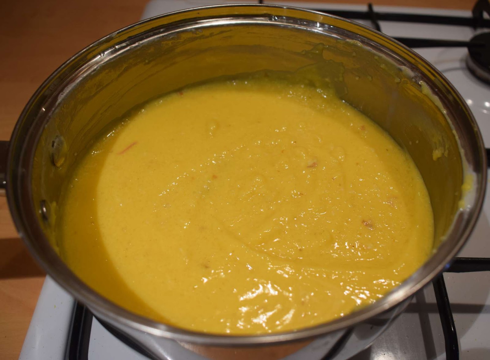 - Add Saffron milk (Step 5) to the pan and mix it properly.
