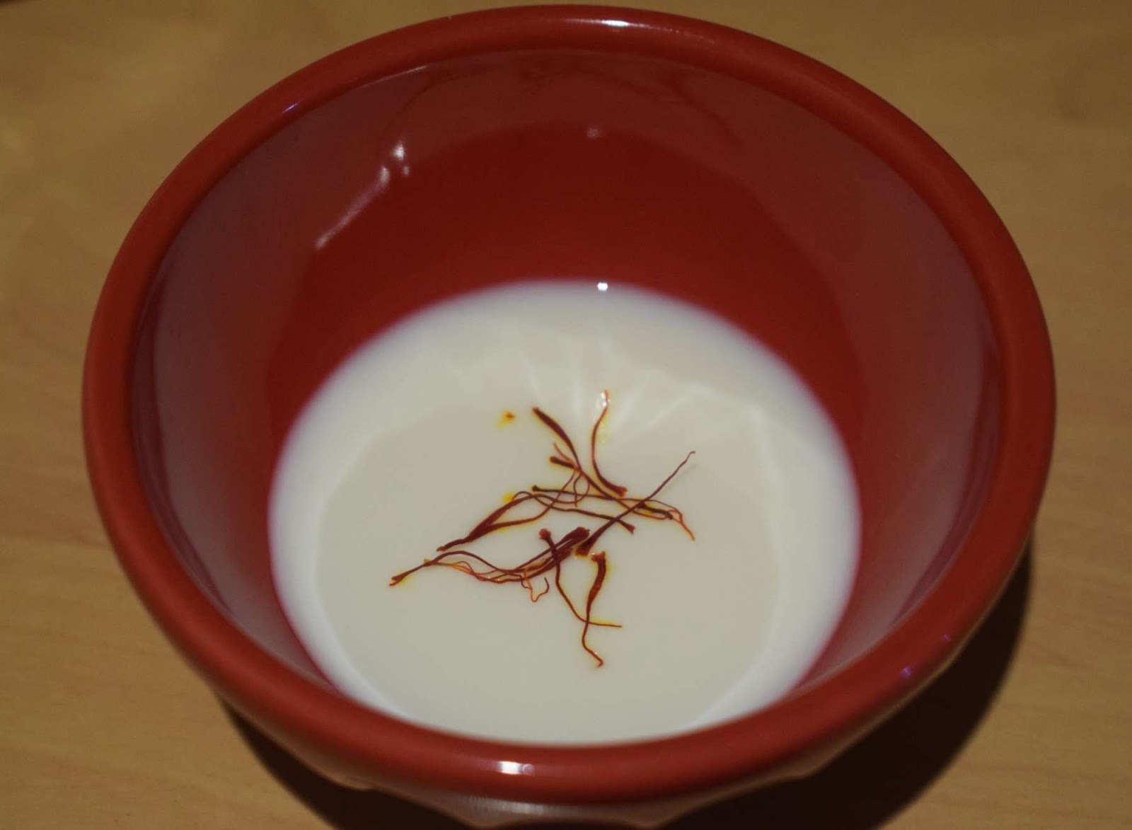 - Once the milk starts boiling, take 3 tablespoons of milk into a separate bowl and soak the Saffron sticks in it. Keep it aside.
