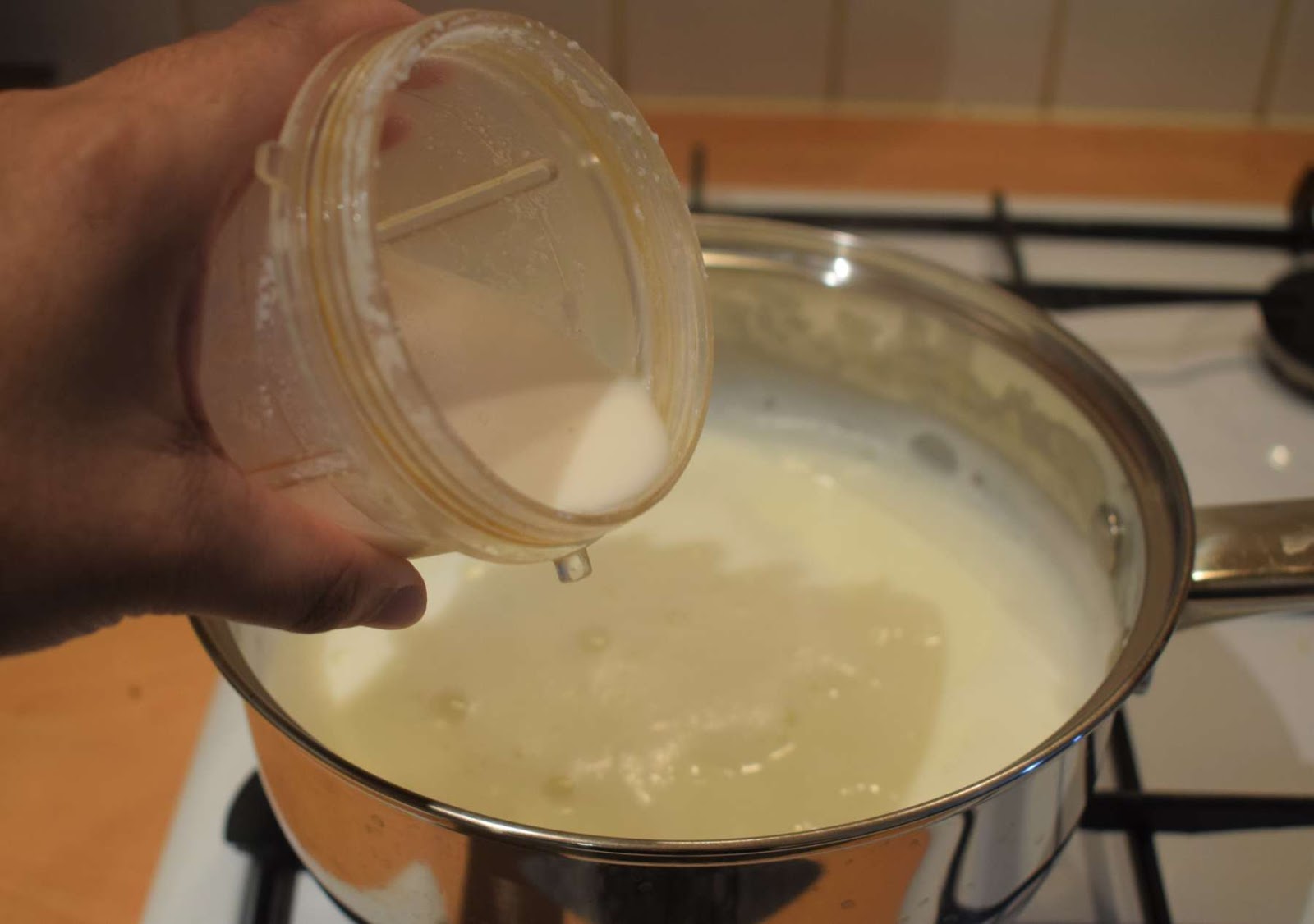 Note: After adding the ground rice content, it is very important to stir them continuously otherwise the ground rice will stick to each other and can form lumps.