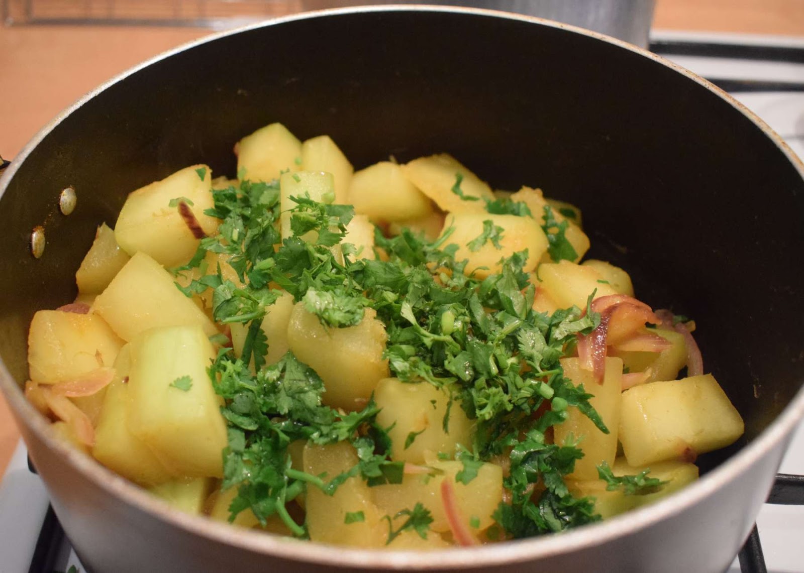 - Sprinkle chopped Cilantros into the pan and give a nice mix.