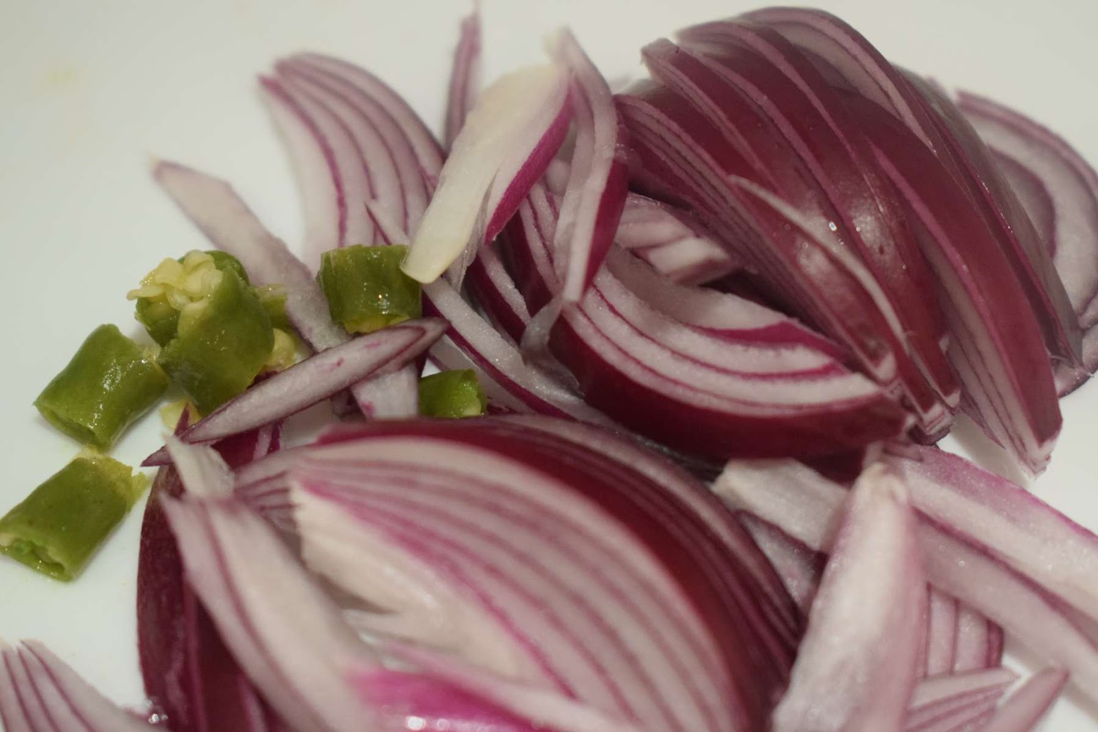 The Garlic boiled with the dal gives a garlicy flavour to the whole dish and sliced raw Onions complement the flavour. The Mustard oil plays an important role in this dish. Its pungent flavour and taste complements the dish and takes it to another level.