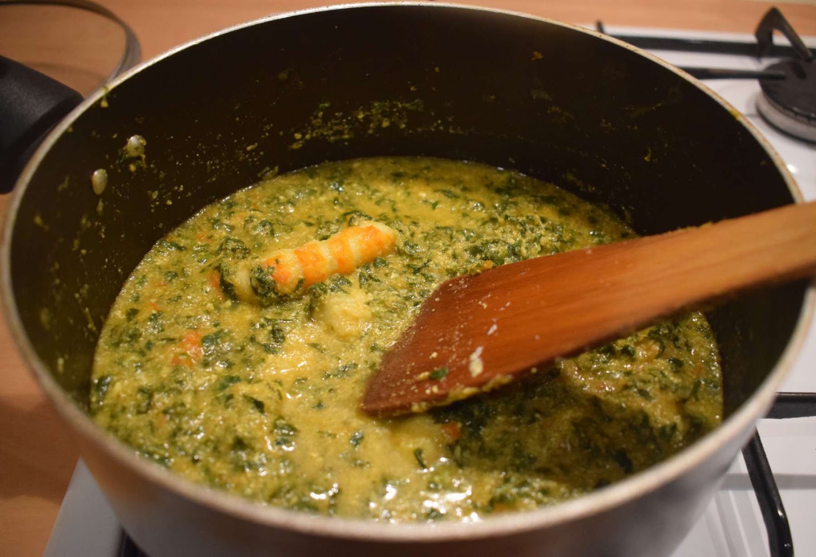 - Add the chopped Fenugreek leaves and give a nice mix.