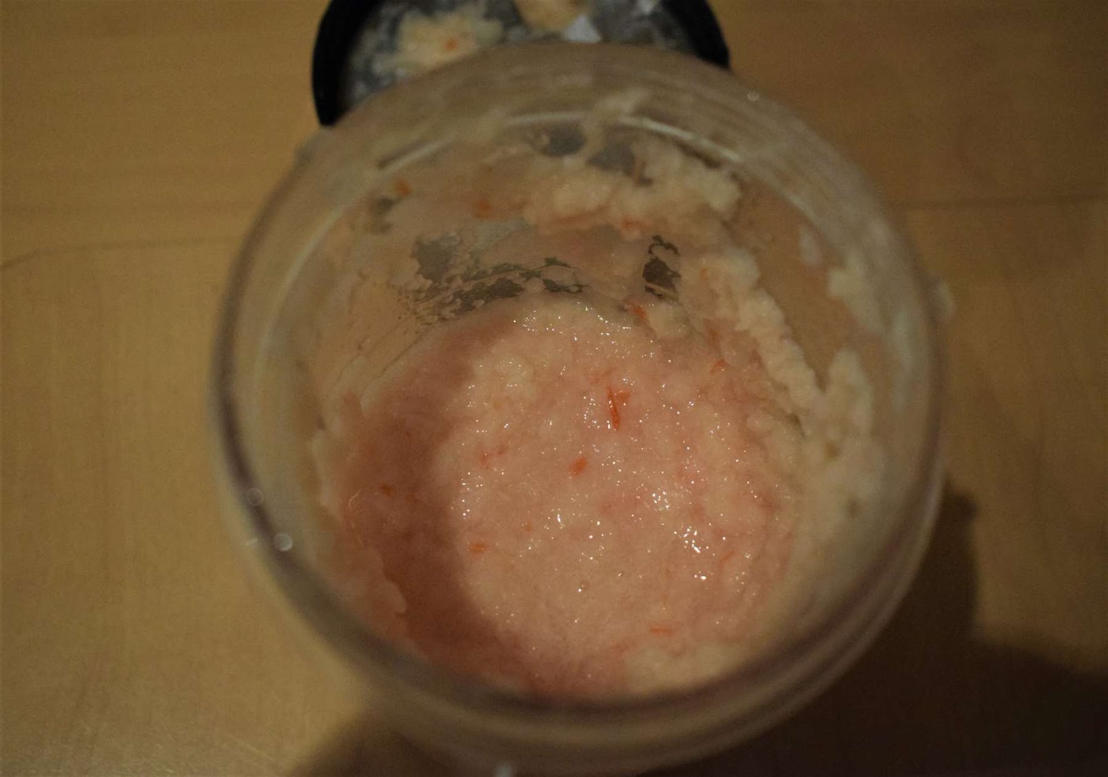 Then I have made the onion masala paste for the recipe prawn curry. I have taken diced Onions, Ginger cubes, Garlic cloves, Tomato chunks and green Chillies into a jar of a blender. Then I have run it on the blender and made a smooth masala paste of it.
