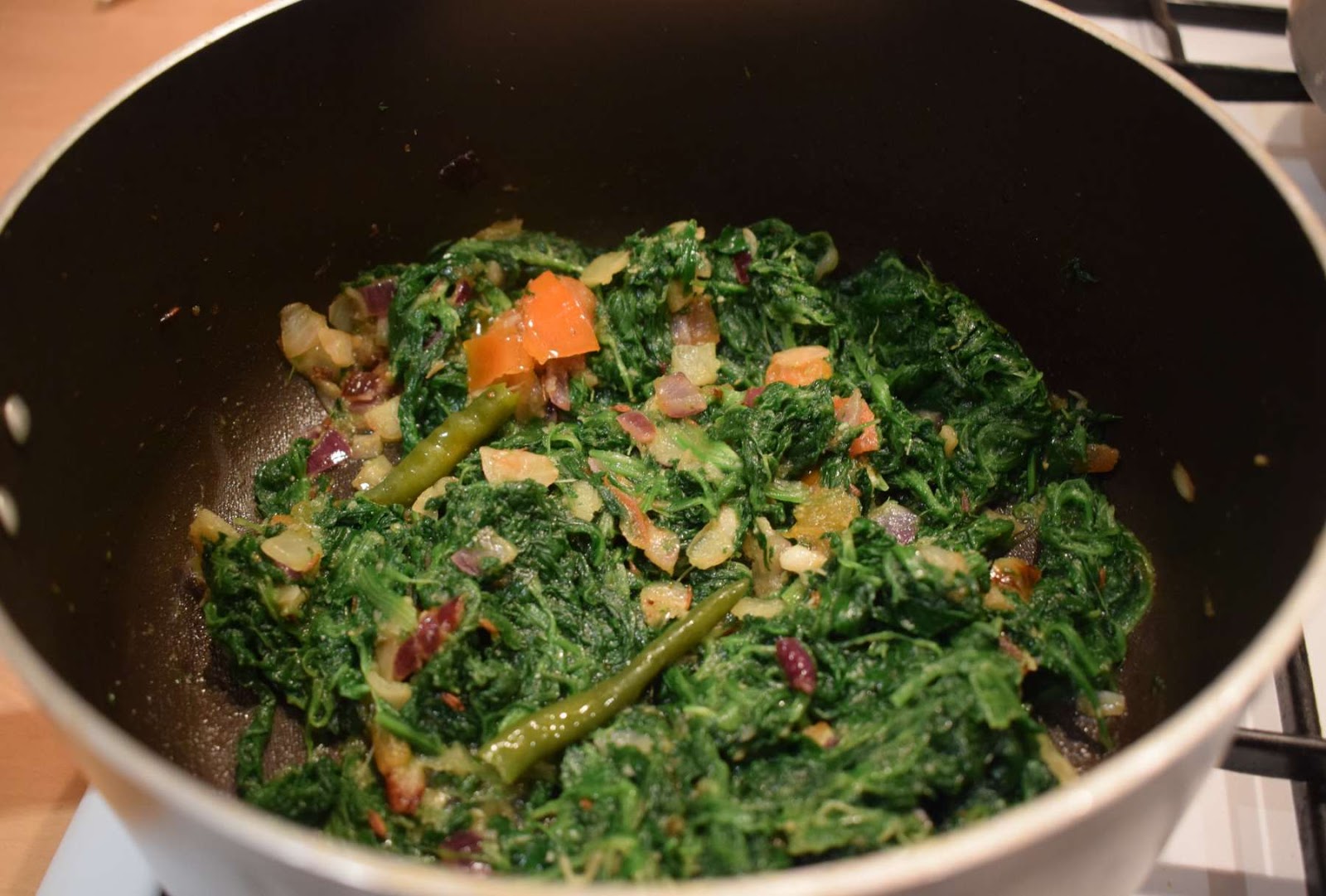 - Add chopped Spinach and green chilli and cook it for 5-6 minutes in low flame.