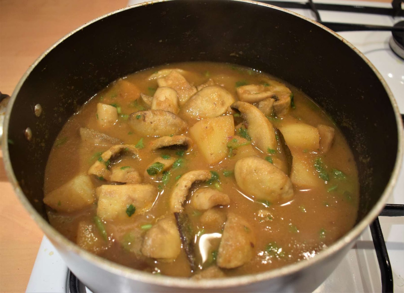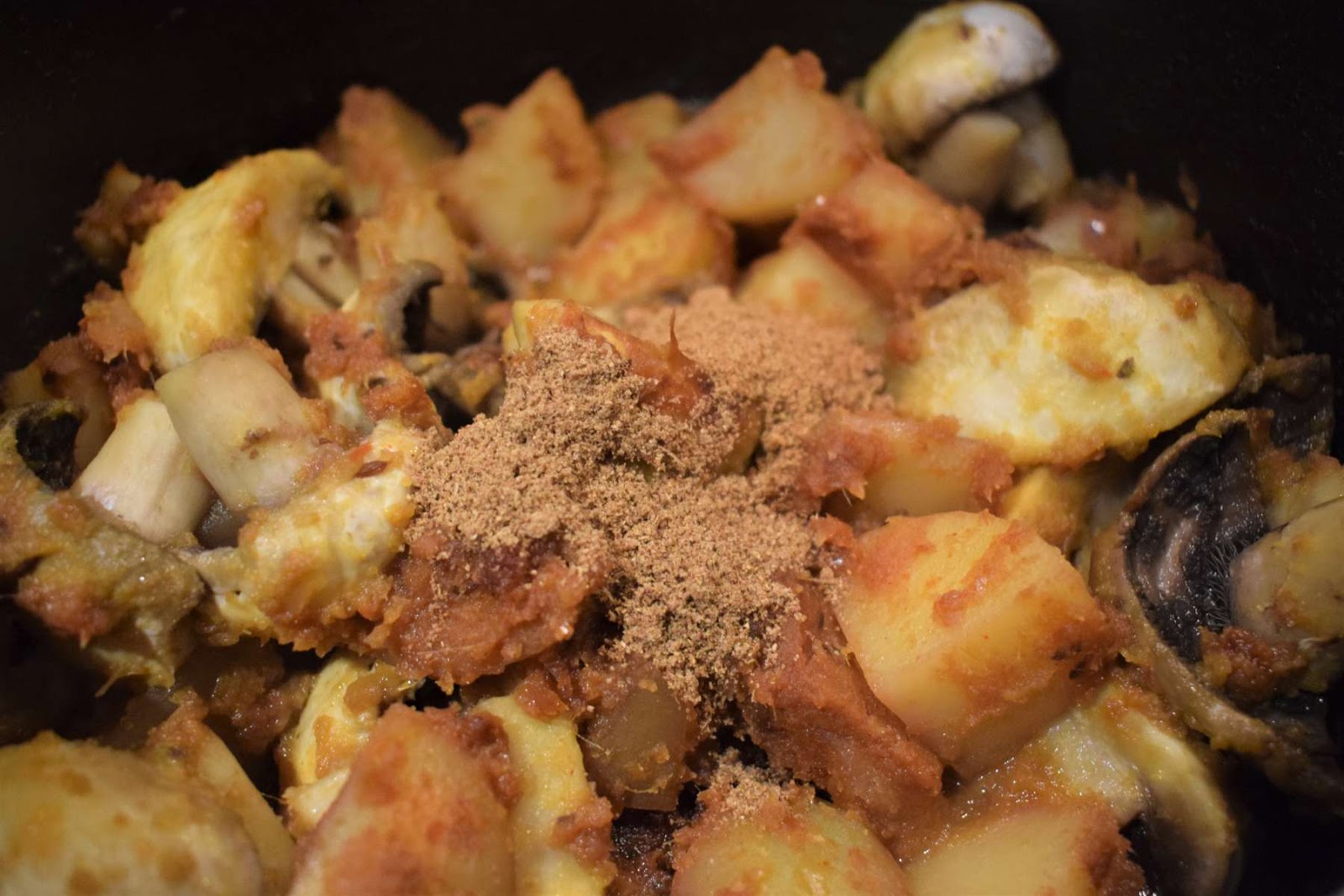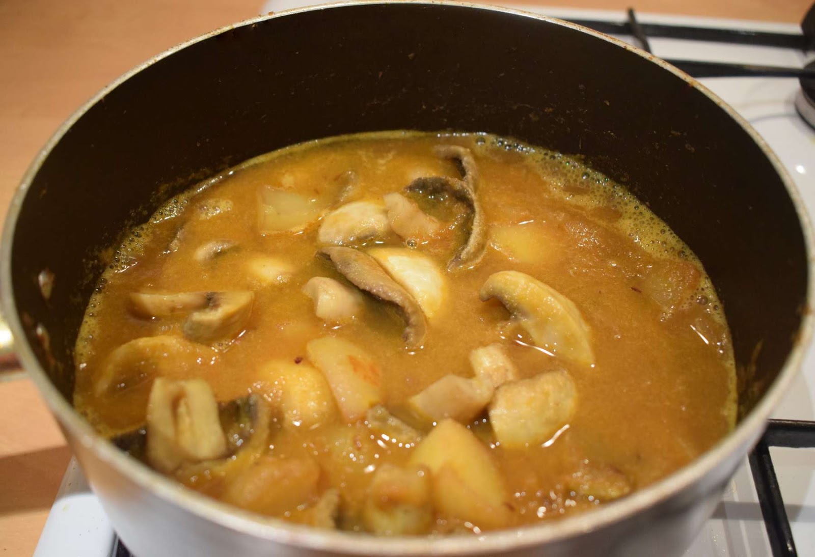 Mushroom Potato Curry with step by step photos and instructions have been provided in the ‘Instructions’ section of the recipe.