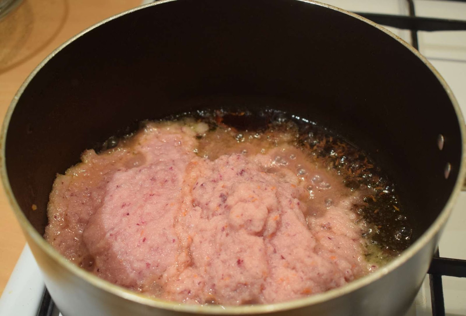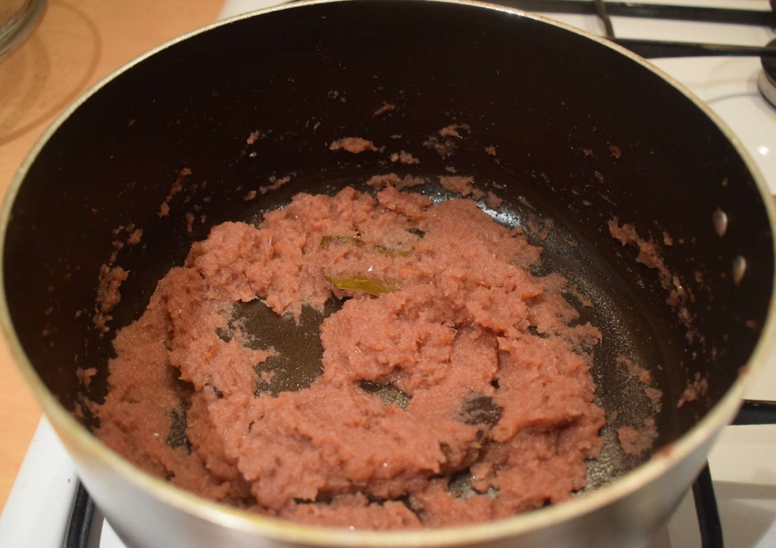 - Put the flame in low and add the masala paste (Step 2) into the pan.